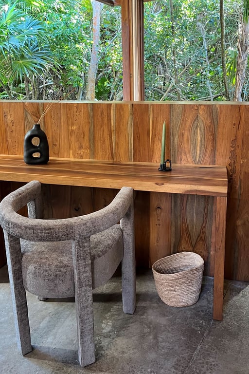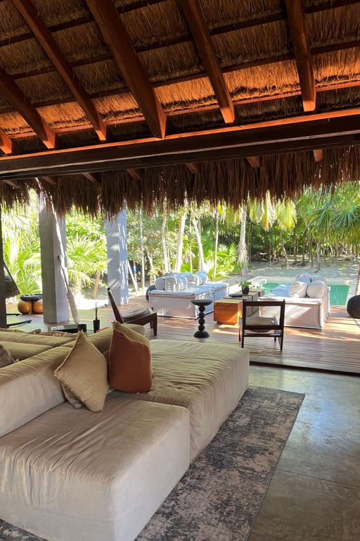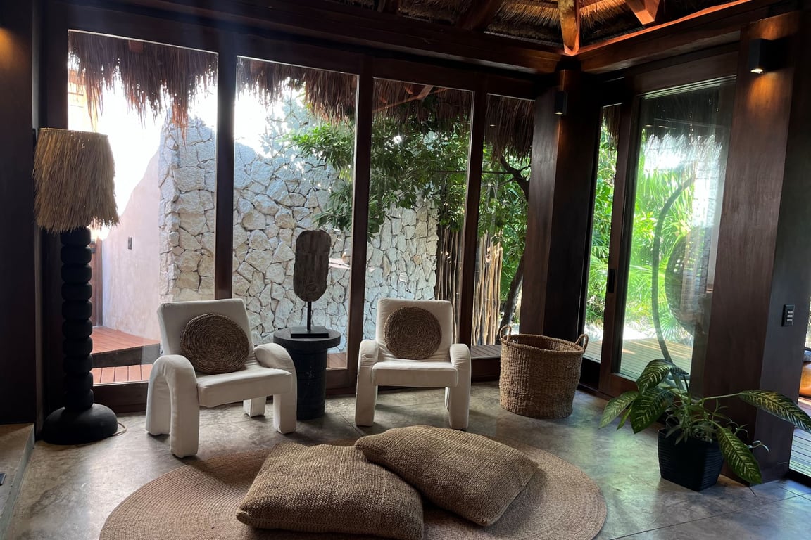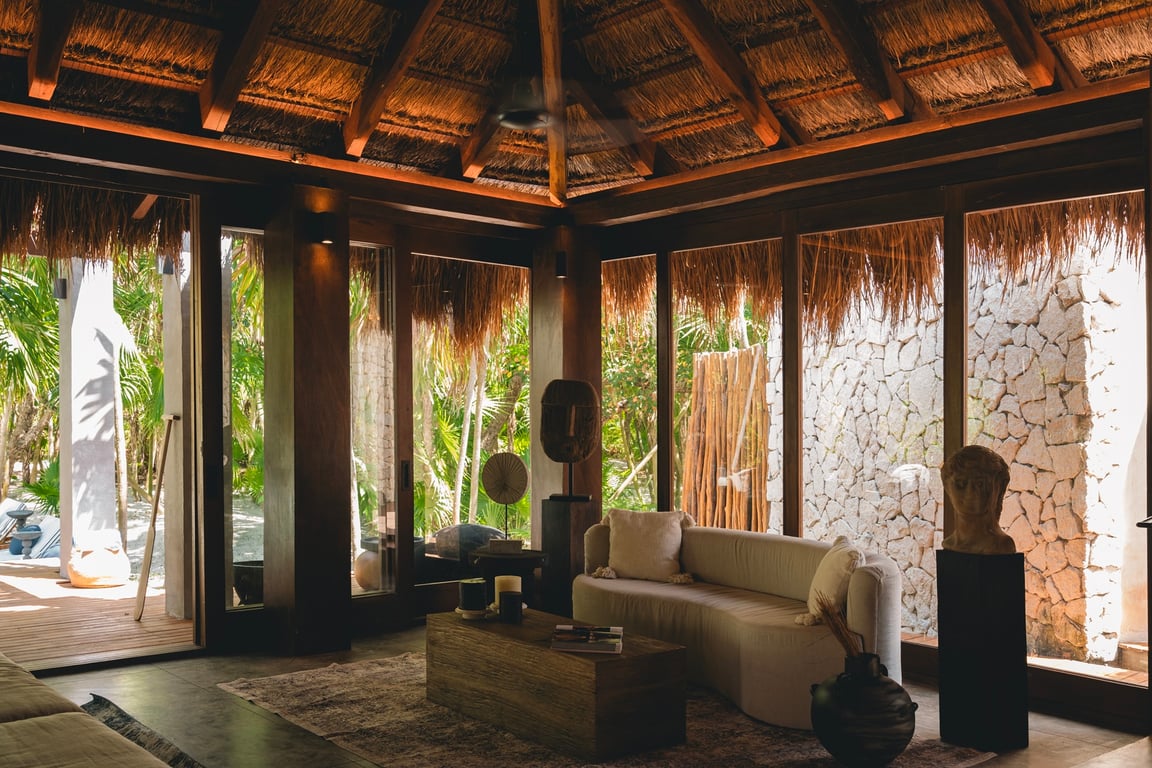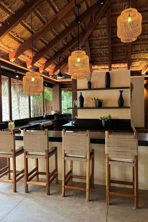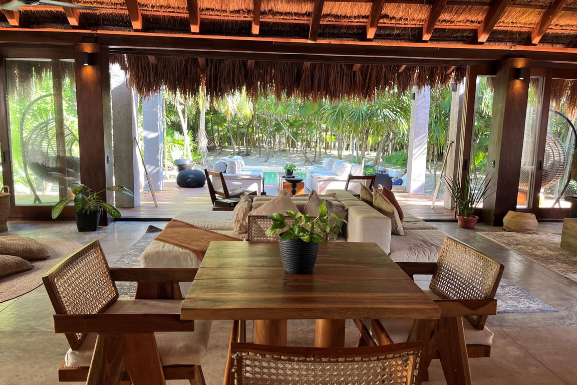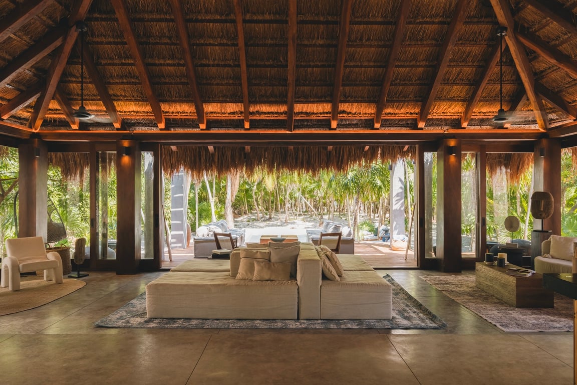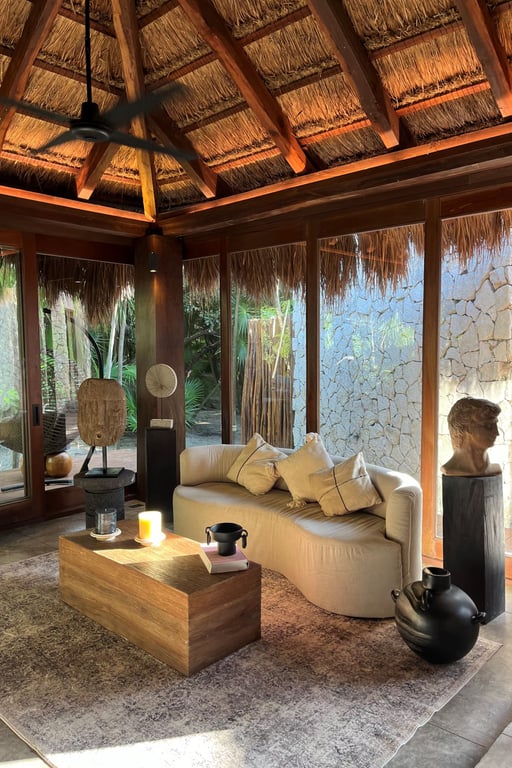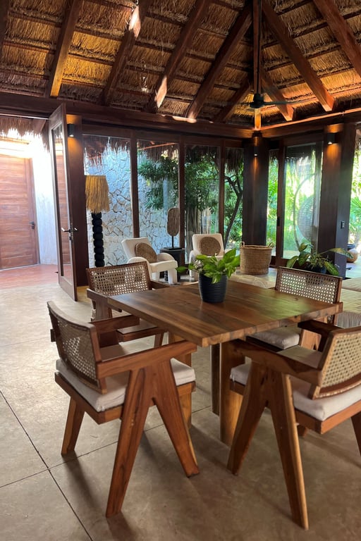 Built in 2023 with meticulous attention to environmental harmony, every element of this 4,232-square-foot residence showcases locally sourced, sustainable materials that honor the region's rich heritage while delivering sophisticated modern comfort. The design philosophy embraces biophilic architecture, allowing the jungle and sea to flow naturally through living spaces, creating an atmosphere that is simultaneously wild and refined, rustic yet elegant.