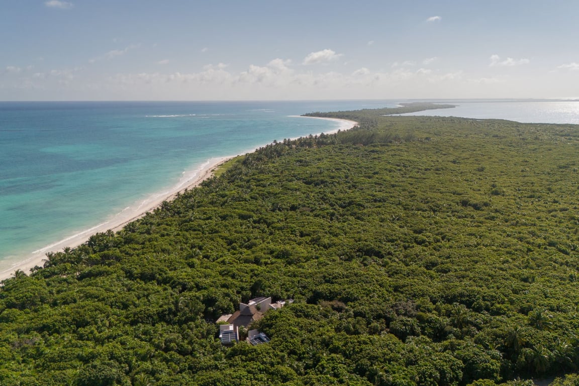 Nestled within nearly 10 acres of untouched coastal paradise along the Tulum-Punta Allen corridor, this extraordinary 4-bedroom residence represents the pinnacle of sustainable luxury living. Where the Caribbean Sea meets tranquil lagoon waters, this architectural masterpiece seamlessly integrates with its natural surroundings, offering an unparalleled sanctuary for those seeking authentic connection with Mexico's most breathtaking landscapes.