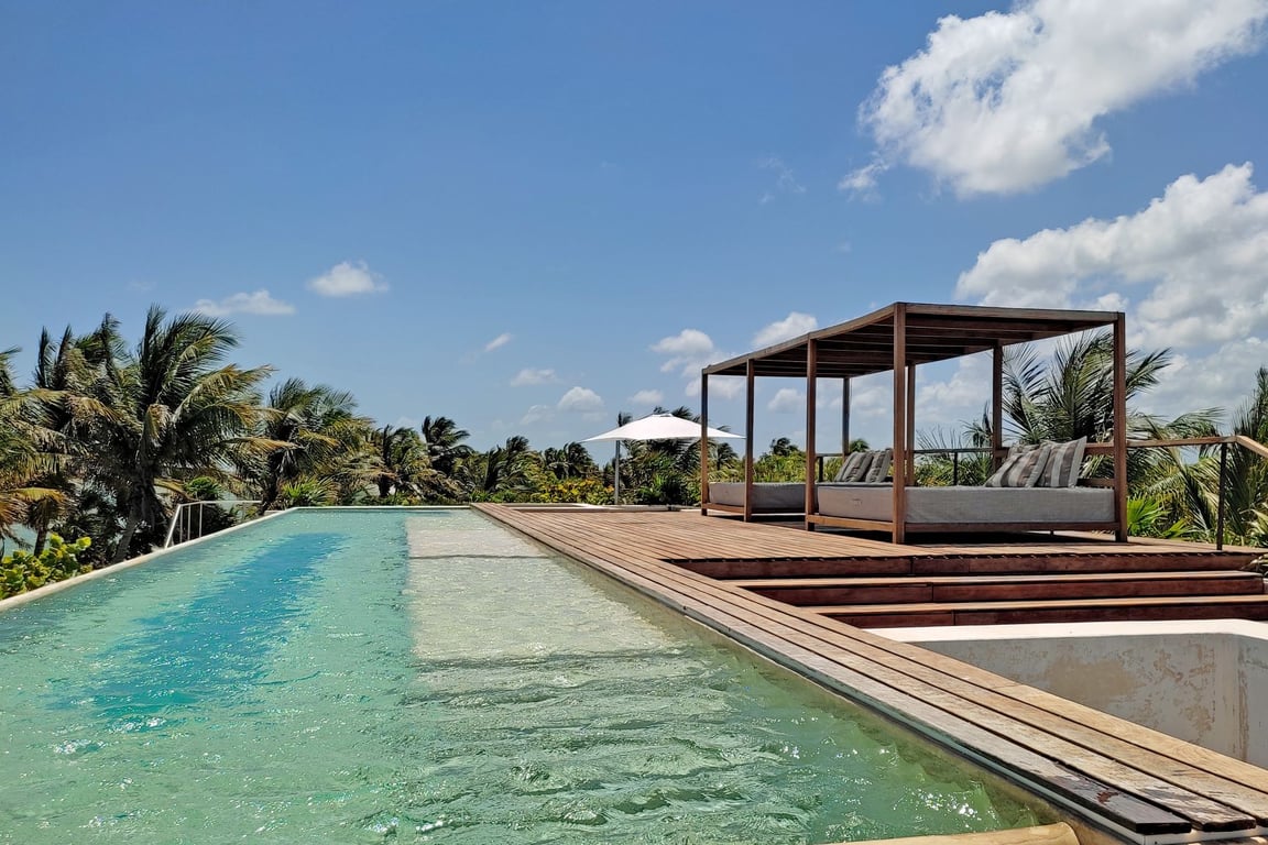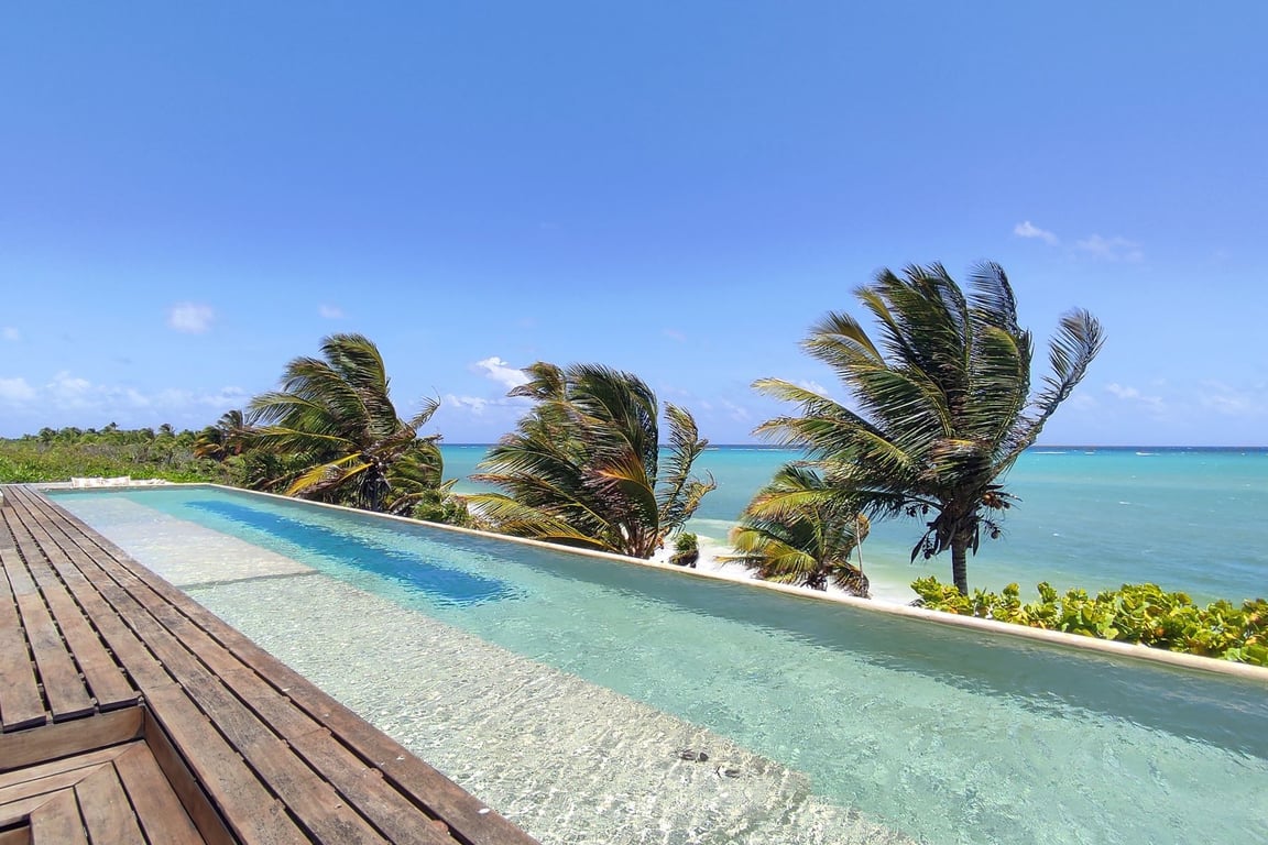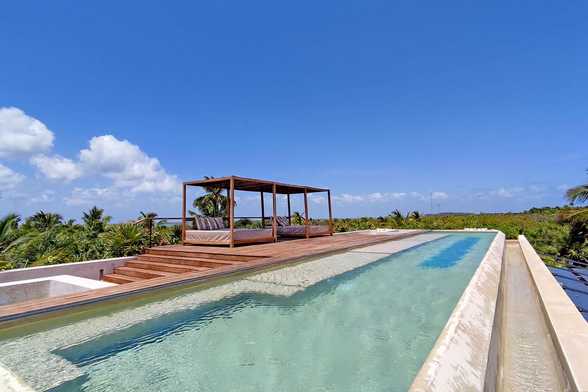 Nestled within the pristine Sian Ka'an UNESCO Biosphere Reserve, Casa del Agua represents the pinnacle of sustainable luxury living where architectural brilliance meets environmental consciousness. This extraordinary minimalist sanctuary commands an impressive 279,871 square feet of protected land with 330 feet of pristine beachfront, offering an unparalleled connection to one of Mexico's most treasured natural wonders.