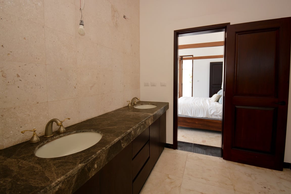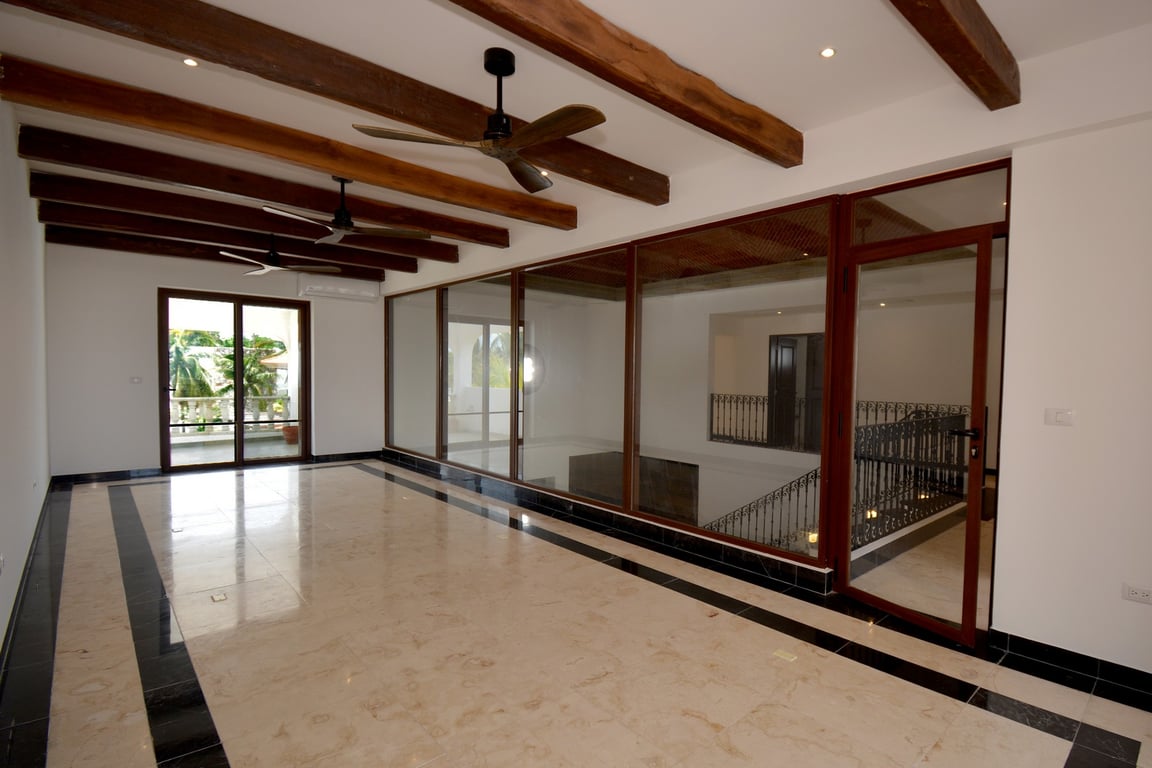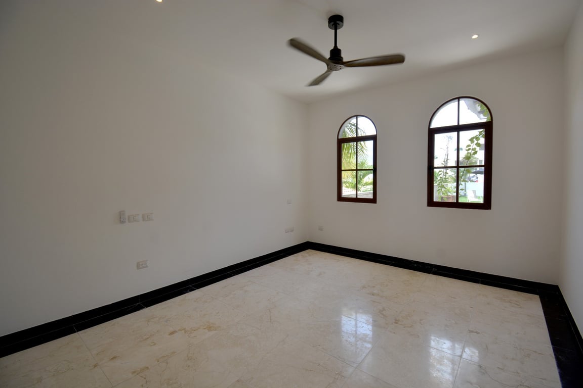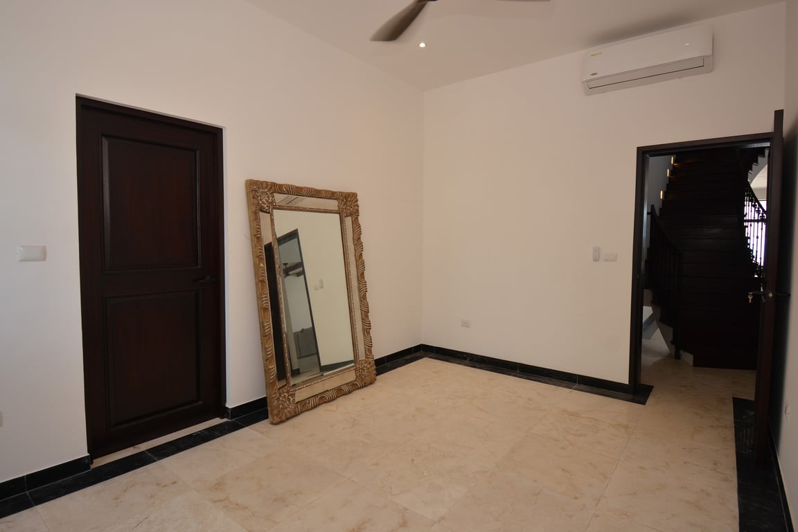The thoughtfully designed floor plan accommodates the most discerning lifestyles with five generously proportioned bedrooms, each accompanied by en-suite bathrooms for ultimate privacy. The ground floor hosts two bedrooms alongside a versatile flex room and dedicated staff quarters with private bath, while the master suite commands attention with its double vanity and expansive walk-in closet. An independent in-law suite provides seamless multi-generational living or guest accommodations. Beyond the interiors, your private pool beckons for endless days of seaside relaxation, while covered parking for two vehicles ensures convenience and protection.