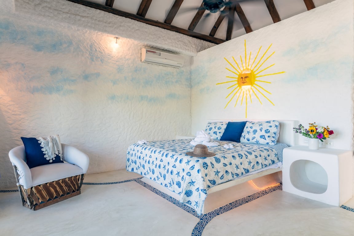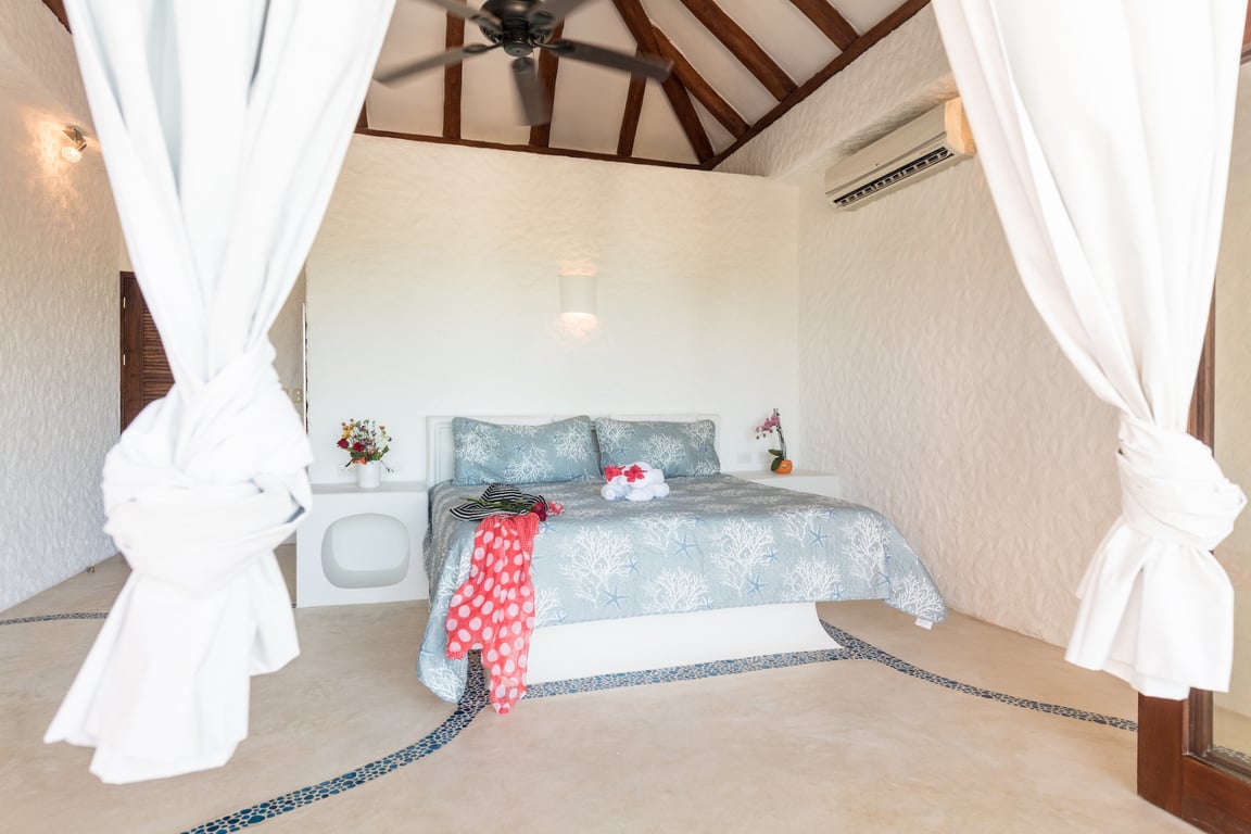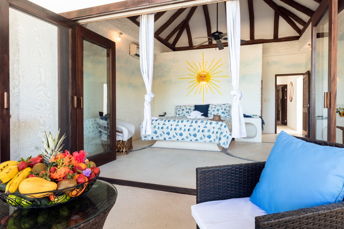 Seven beautifully appointed bedrooms and seven refined bathrooms accommodate up to 20 guests in supreme comfort. The accommodations include four bedrooms with flexible double configurations ideal for groups or families, two sumptuous master suites featuring king-size beds and private bathrooms with premium finishes, and the exceptional Sunflower Bungalow—a fully wheelchair-accessible seventh bedroom offering enhanced privacy and independence. Every room features modern amenities including air conditioning, ceiling fans, Smart TVs with Netflix access, and high-speed Wi-Fi, ensuring guests enjoy contemporary comforts within this beachfront paradise.