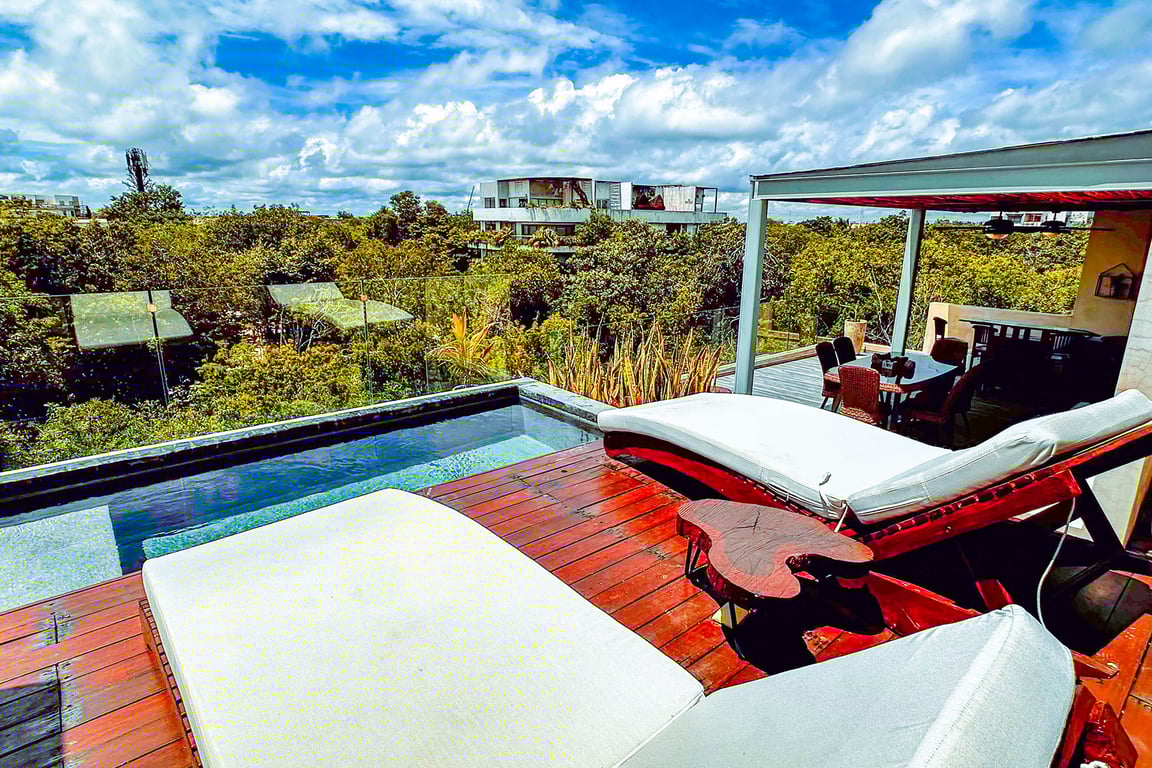 Discover an extraordinary three-level penthouse in the prestigious Luum Zama development, where contemporary sophistication meets Tulum's enchanting natural landscape. Spanning an impressive 3,223 square feet, this architectural masterpiece offers a rare combination of elegant living spaces, investment versatility, and breathtaking Caribbean views—all just moments from the turquoise waters that have made Tulum a global destination.