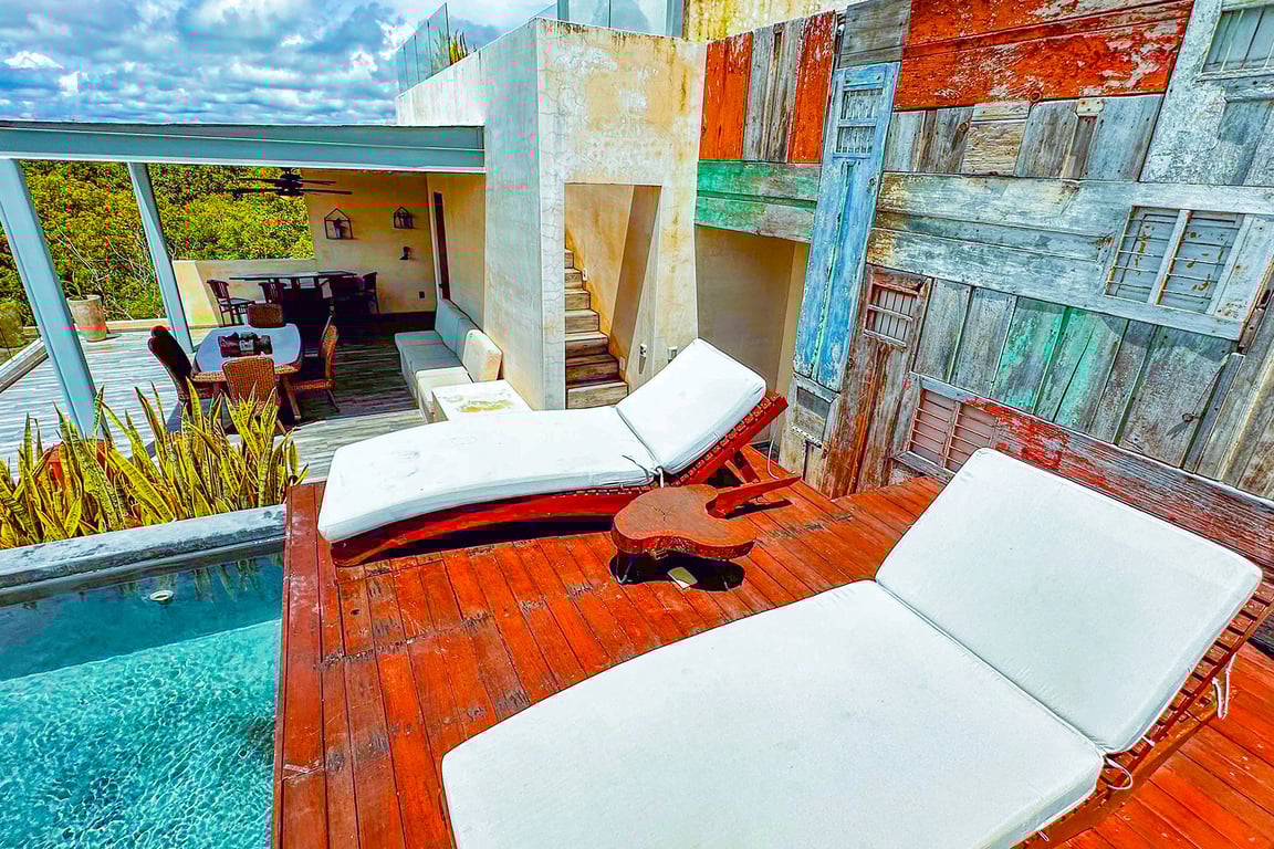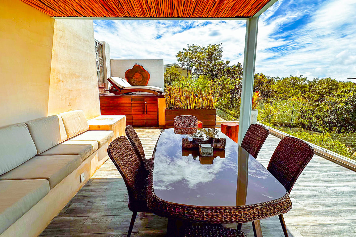 The crowning jewel awaits on the third floor, where a private pool and entertaining terrace create an intimate oasis. Above, the spectacular rooftop unfolds with panoramic ocean views, lounge areas, and an outdoor living space designed for capturing Tulum's legendary sunsets in complete privacy.