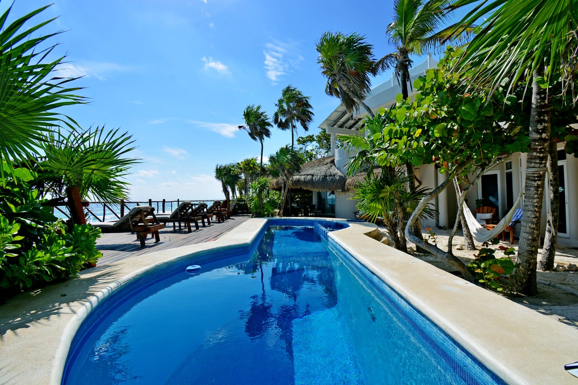 Discover an extraordinary opportunity to own a piece of paradise within one of Mexico's most protected and pristine ecosystems. Serenity Sands Villa is a magnificent 5-bedroom beachfront estate nestled within the UNESCO-designated Sian Ka'an Biosphere Reserve, offering 328 feet of exclusive Caribbean coastline and lagoon frontage across 2.66 acres of unspoiled natural beauty.