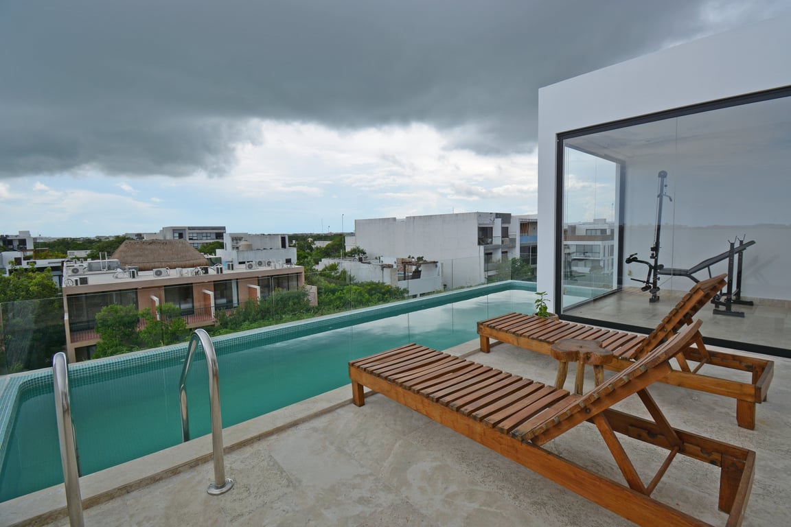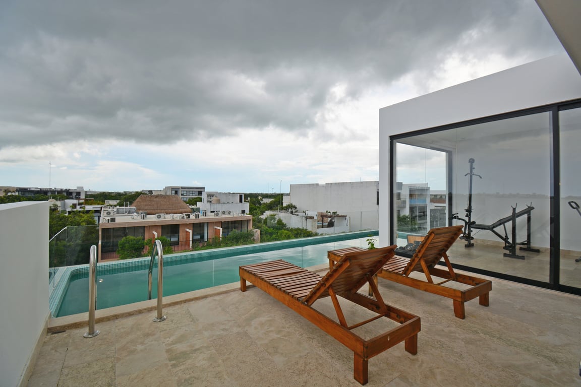 Aldea Zamá represents the pinnacle of Tulum living—a masterfully planned community that places you minutes from pristine Caribbean beaches while maintaining the tranquility of a residential enclave. The development's rooftop amenities elevate everyday living with panoramic jungle views from the infinity pool, a fully equipped fitness center, barbecue stations for al fresco dining, and a sophisticated social lounge. A dedicated laundry facility adds practical convenience to this luxury package. With only 3 commercial spaces integrated into the development, you'll enjoy select dining and services at your doorstep.