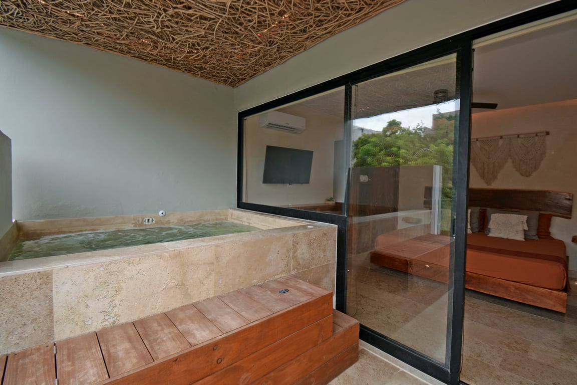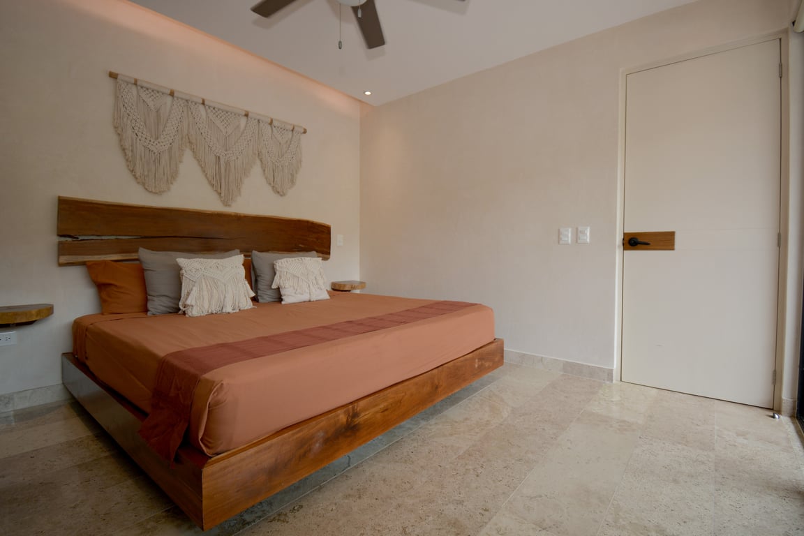 This 2022-built residence exemplifies thoughtful architectural design, where every detail has been carefully curated to create an atmosphere of refined comfort. The 592 square foot layout maximizes space and natural light, featuring luxurious marble surfaces paired with traditional chukum finishes—a time-honored Mayan technique that brings organic texture and breathability to the walls. These authentic materials don't just enhance aesthetics; they create a naturally cooling environment perfectly suited to Tulum's tropical climate.