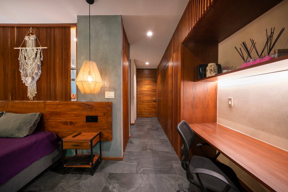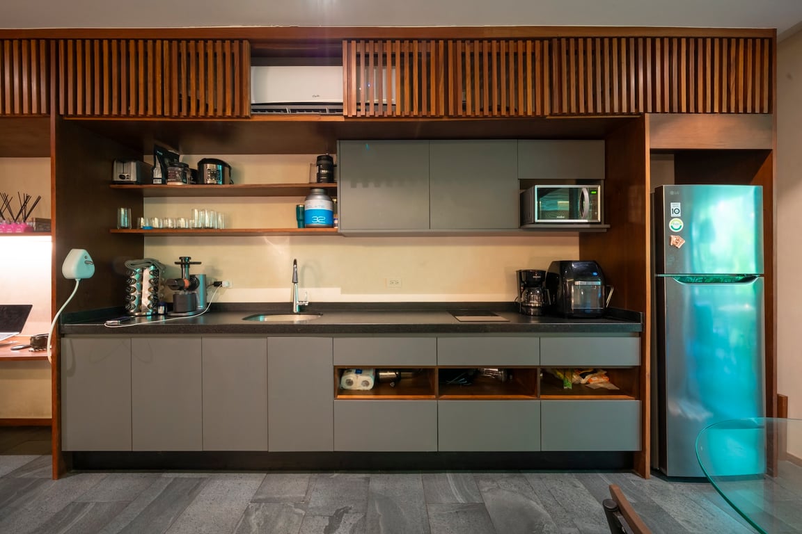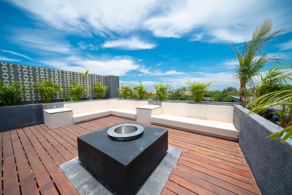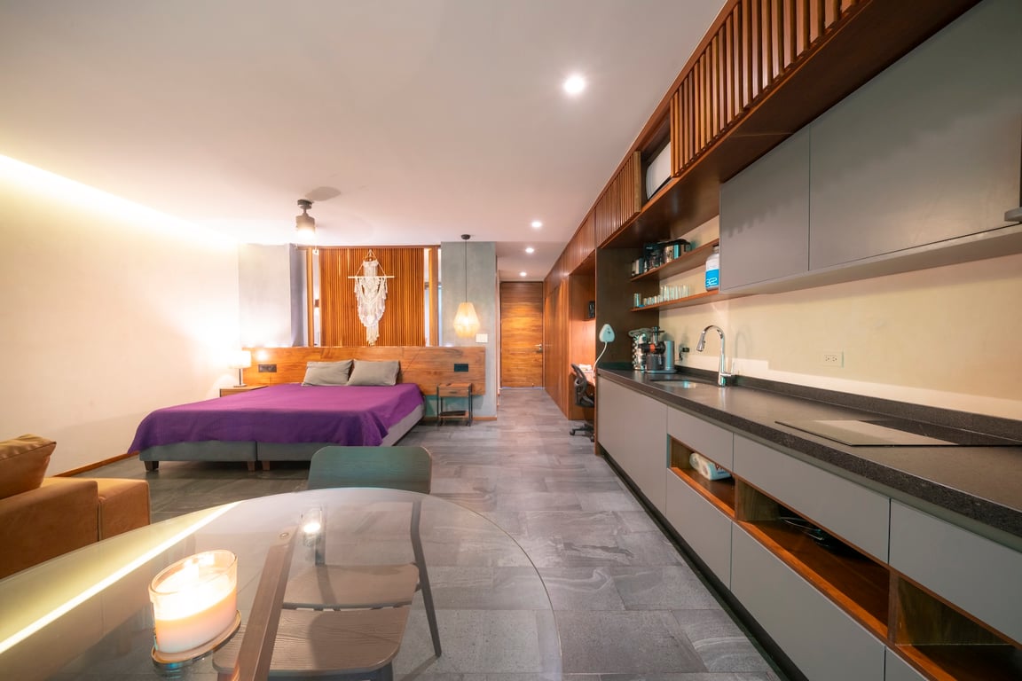 The amenity collection elevates everyday living to resort-style luxury: a ground-level cenote-inspired pool offers refreshing escapes, while the rooftop presents a heated infinity pool, lounge beds, hammocks, and a fire pit perfect for sunset gatherings. The air-conditioned coworking space features a full kitchen, bar, and communal table for productive days, complemented by an open-air fitness area for wellness pursuits. With 24/7 security and on-site reception, every practical need is thoughtfully addressed.