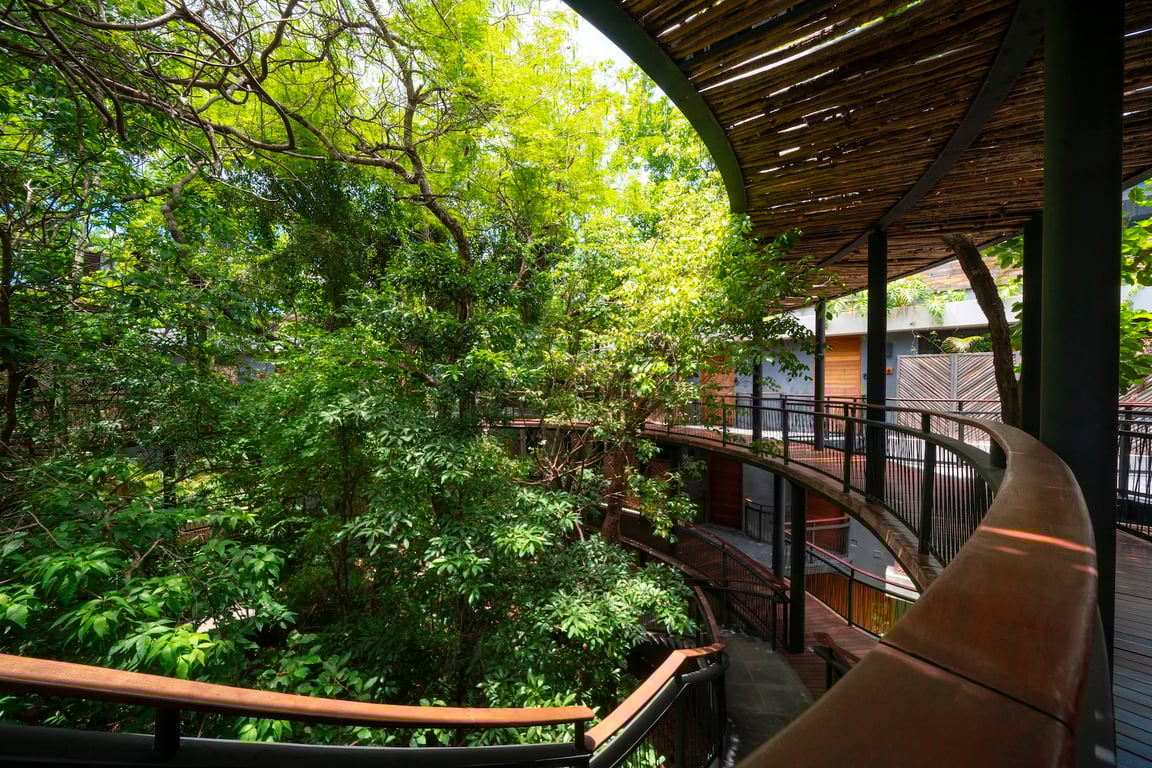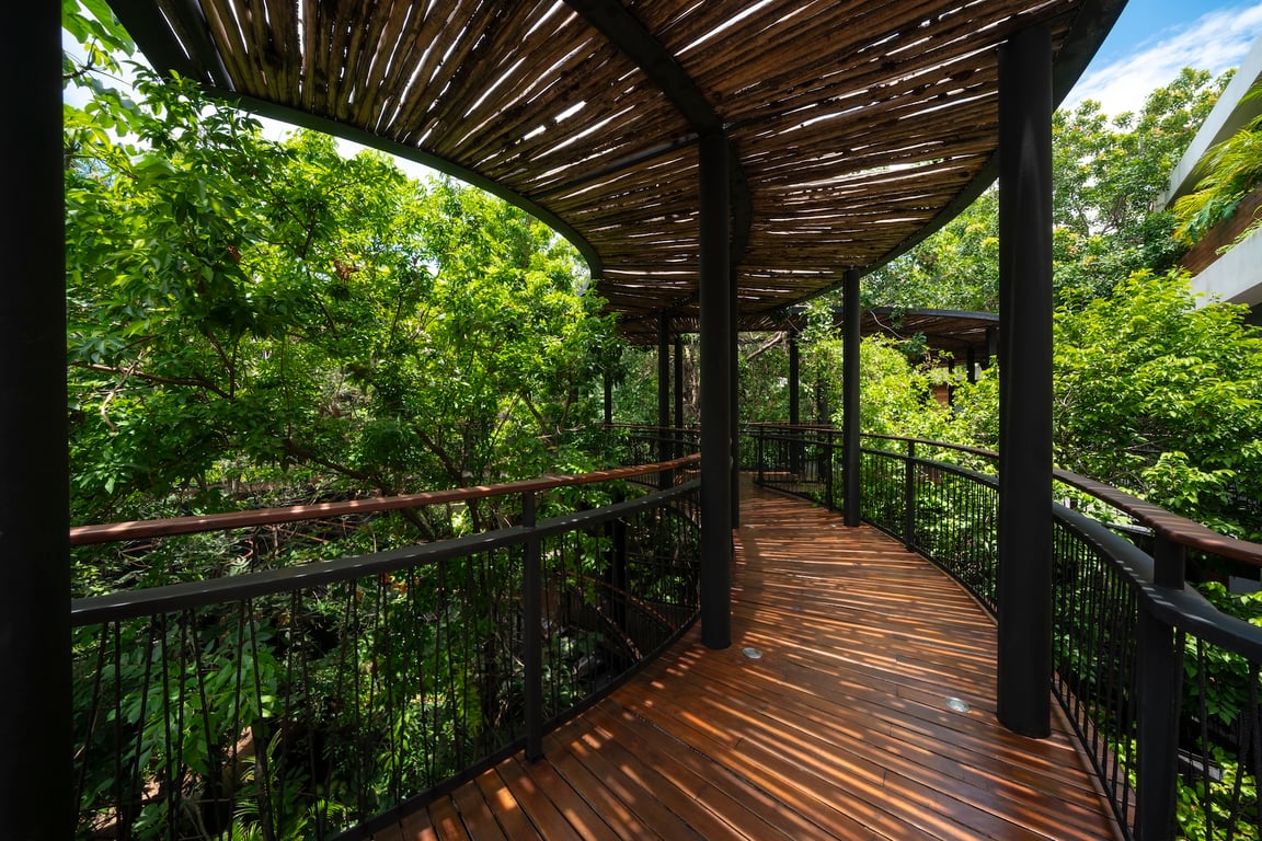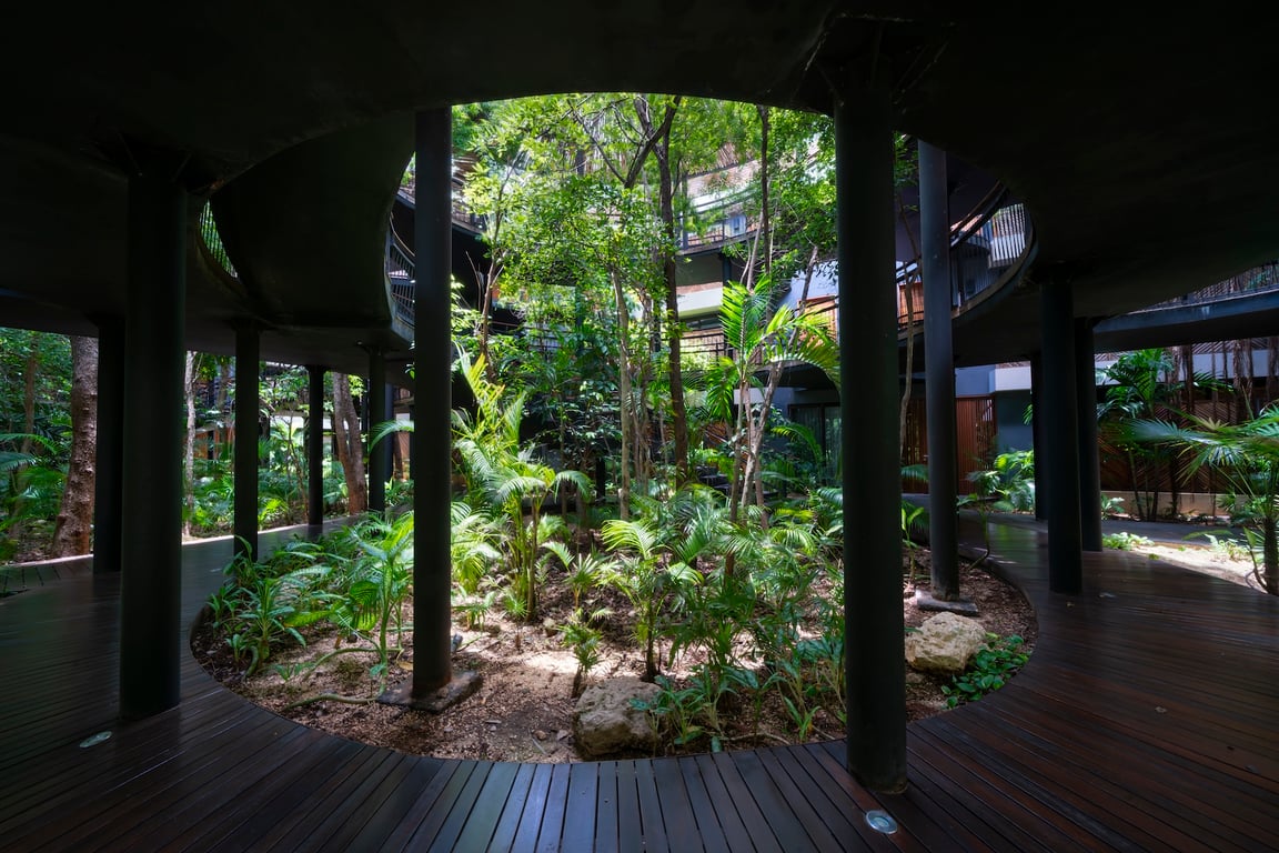 The residence itself is an architectural marvel—a spiral-shaped structure conceived to preserve native trees, with wooden walkways that wind through the canopy and materials thoughtfully selected to complement the surrounding landscape. This bioclimatic vision ensures that every element works in concert with nature, creating spaces that breathe, flow, and respond to the tropical environment. The building's unique design transforms daily living into a sensory journey through one of Tulum's most innovative developments.