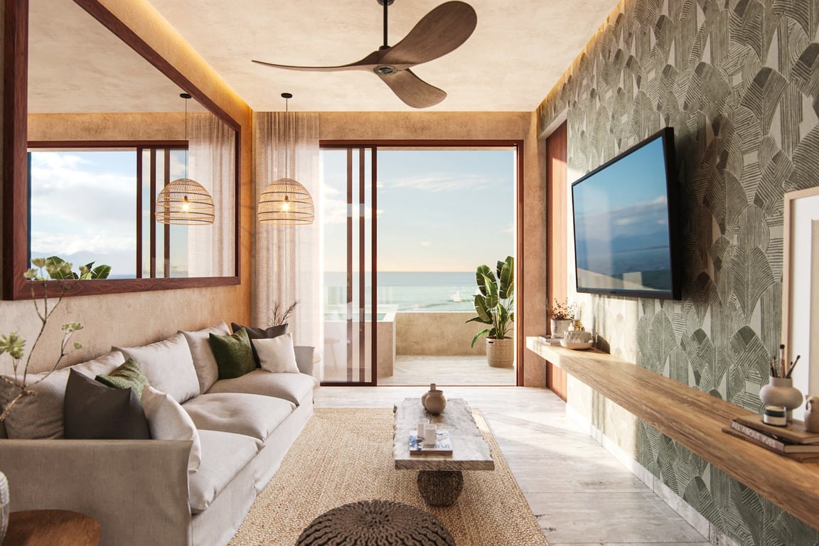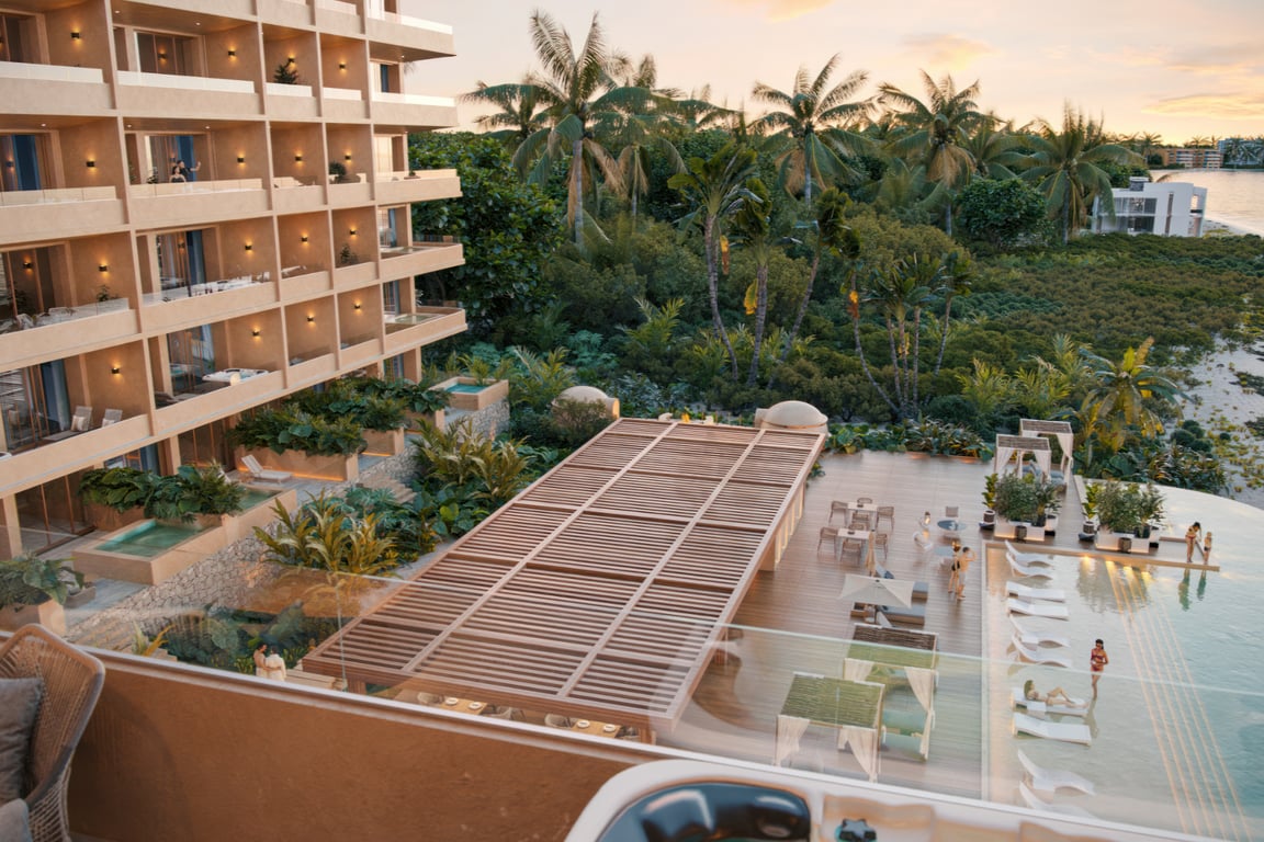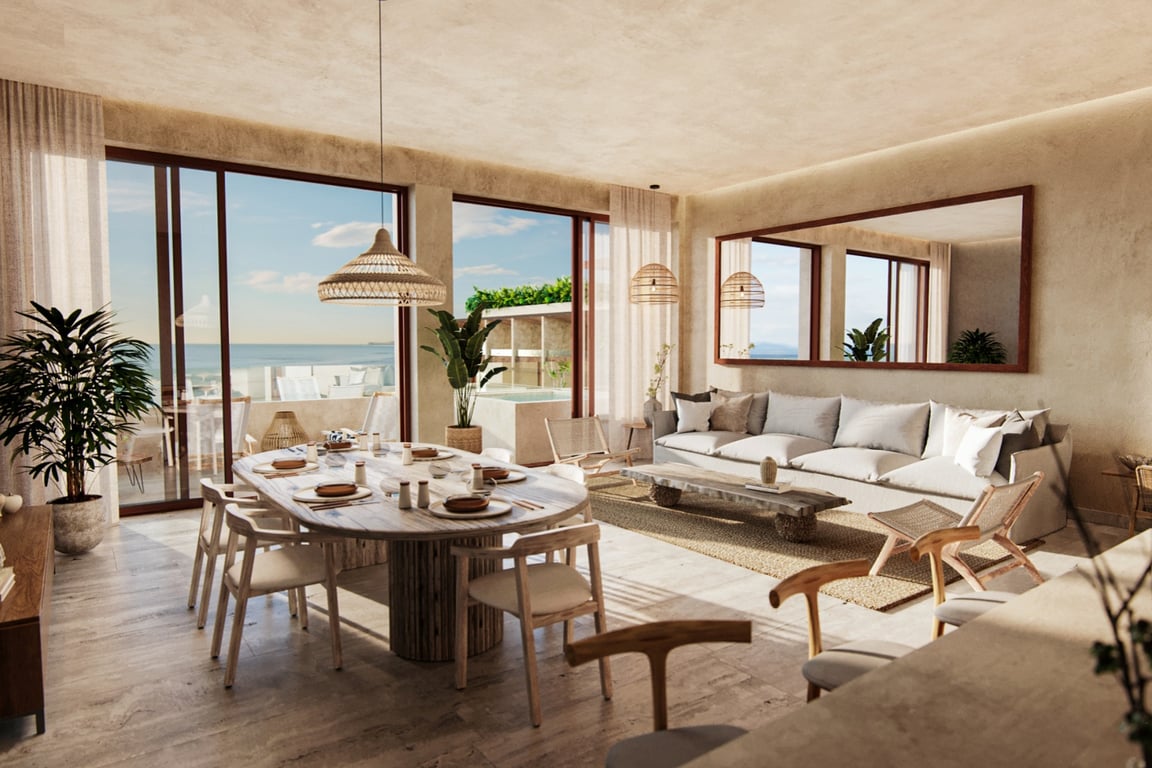 This three-bedroom, three-bathroom residence offers generous living space within an intimate community of just 73 thoughtfully designed units. The innovative lock-off system provides exceptional flexibility, allowing owners to create separate living zones for enhanced privacy or rental opportunities. Panoramic windows frame spectacular views of both the Caribbean Sea and the serene mangrove ecosystem, bringing the natural beauty of the Riviera Maya directly into your living spaces. Wake each morning to the sound of gentle waves and retire each evening with sunset vistas that paint the sky in brilliant hues.