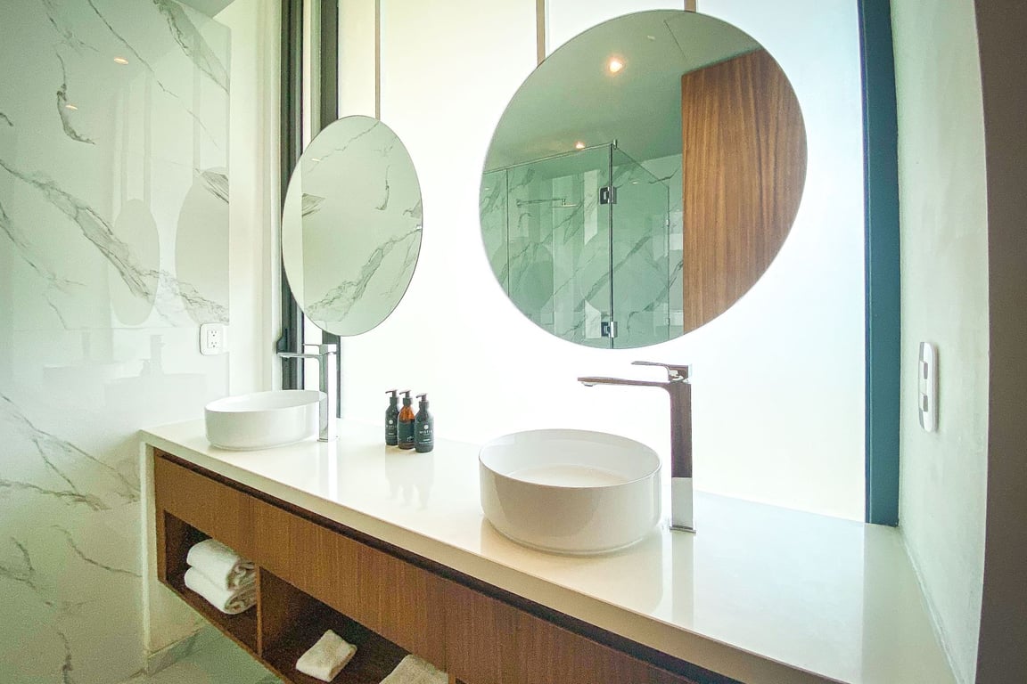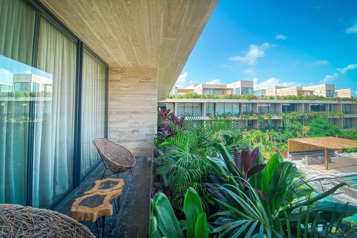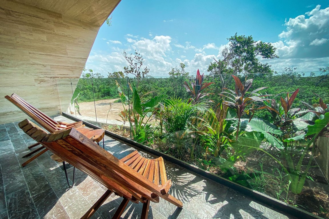 Spanning 1,076 square feet of meticulously crafted living space, this residence showcases a masterful blend of modern luxury and organic design principles. Marble floors flow throughout the interior, creating a sense of continuity and refined elegance, while floor-to-ceiling windows dissolve the boundaries between indoor and outdoor living. The private terrace extends gracefully along the residence, providing an elevated vantage point to absorb breathtaking panoramic views of Tulum's lush jungle canopy—a living tapestry that changes with each passing hour.