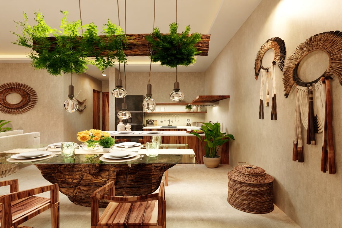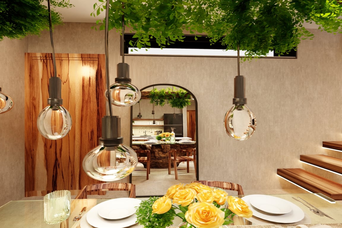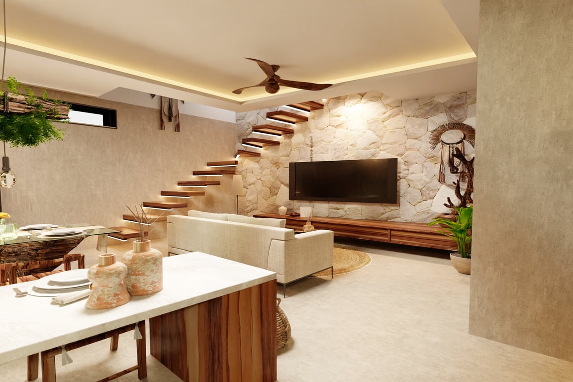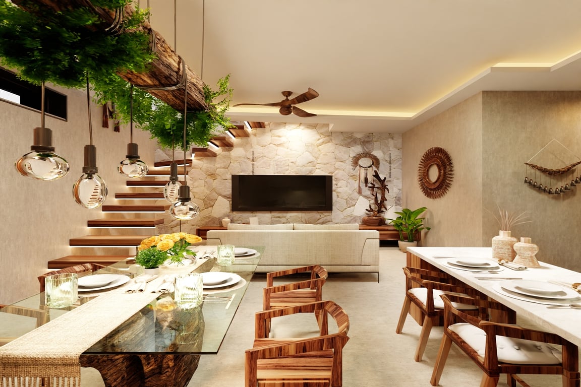 The architectural narrative of this villa celebrates Mexico's rich cultural heritage through the masterful integration of regional materials and time-honored construction techniques. Tzalam and parota woods lend warmth and authenticity to the interiors, while traditional Chukum—a Mayan plastering technique used in ancient archaeological sites—creates breathtaking textured surfaces. Travertino moka marble floors flow throughout the residence, complemented by handcrafted matte finishes, granite accents, and sophisticated matte black fixtures that anchor the contemporary aesthetic. Every detail has been considered to create a sanctuary that honors the past while embracing modern luxury.