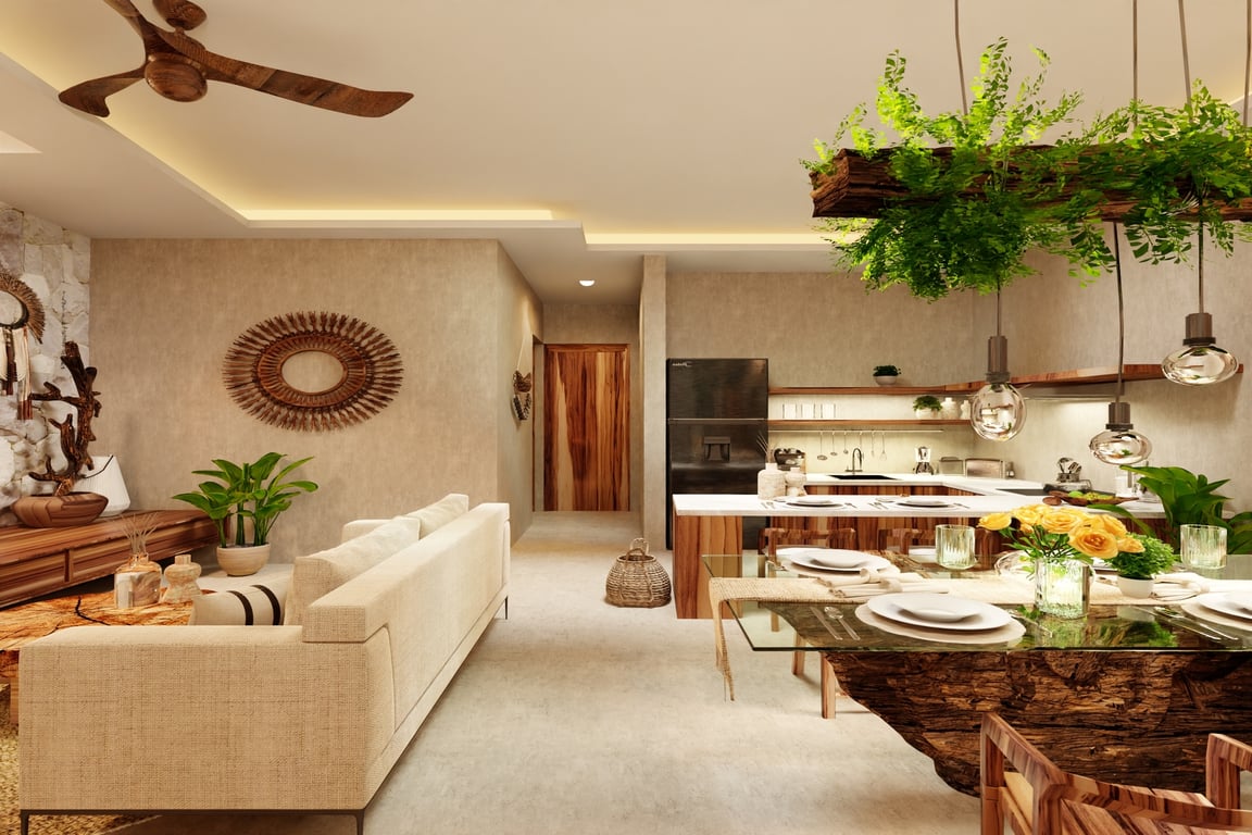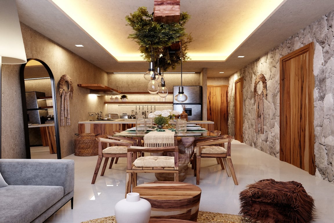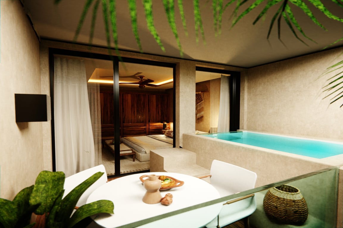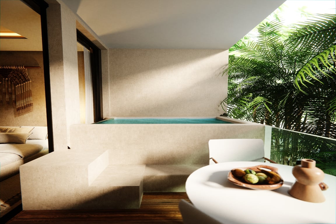 Residents enjoy privileged access to over 20 world-class amenities that rival the finest resorts: indulge in the full-service spa and traditional Temazcal Mayan sauna, maintain your wellness routine in the state-of-the-art gym and yoga studio, or unwind in the stunning Kukulcan pool and rooftop club. The development features a private movie theater, beach club access at Ahau Tulum, coworking spaces for the modern professional, and a spectacular circular crystal glass elevator. From the semi-professional swimming lane to the Nidos lookout perfect for sunset photography, every amenity has been curated for the discerning lifestyle.