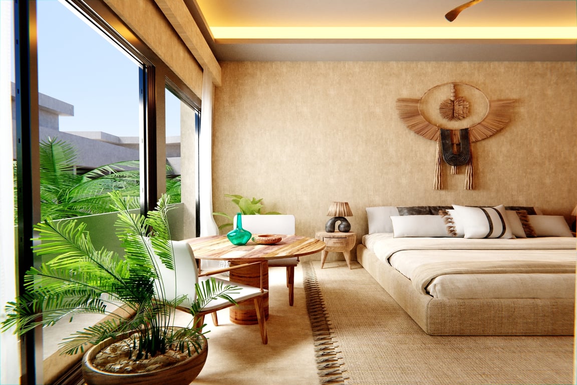 Discover the pinnacle of sophisticated living in Tulum's Region 8 with this extraordinary 4-bedroom custom villa penthouse, where ancient Mayan craftsmanship converges with contemporary design excellence. Spanning 2,217 square feet of meticulously crafted living space, this lock-off residence represents the crown jewel of an exclusive 86-unit development positioned closer to Tulum's pristine Caribbean beaches than any other property in the region.