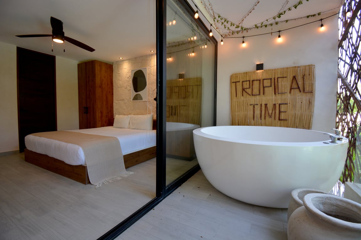 The architectural philosophy behind JADE Tulum celebrates the harmonious balance between contemporary design and natural beauty. Premium finishes throughout the residence create an atmosphere of refined elegance, while the intelligent floor plan ensures that each square foot serves a purpose. The crowning jewel of this intimate sanctuary is the exclusive Whirlpool tub—a rare amenity that transforms your daily routine into a spa-like ritual, offering a private refuge where you can unwind and rejuvenate without ever leaving home.