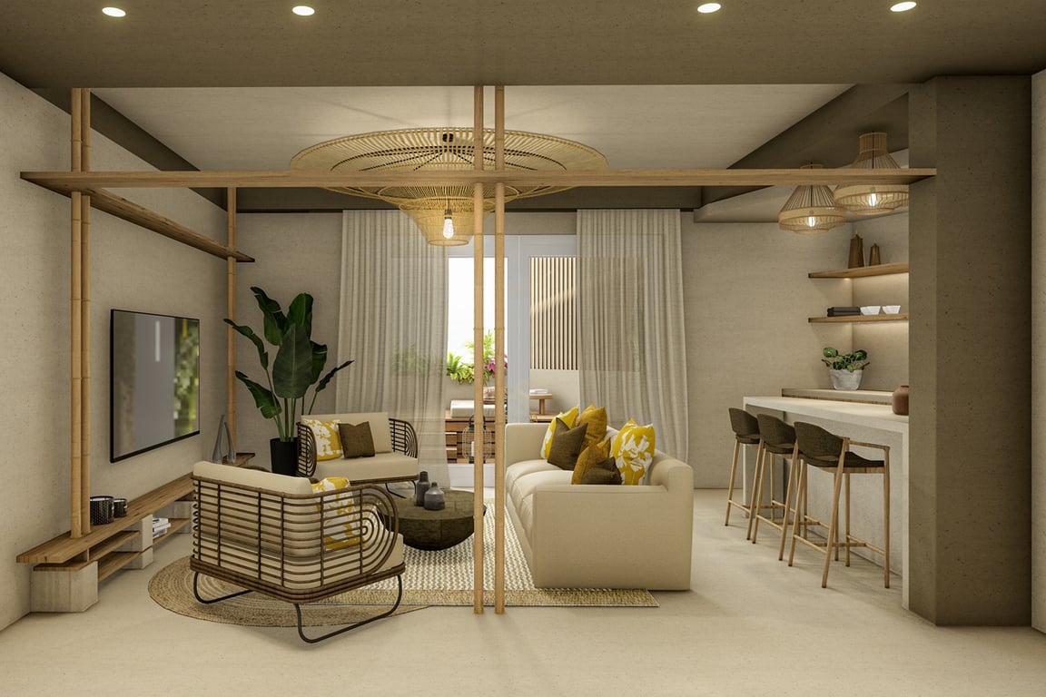 Beyond your residence, an impressive array of amenities elevates daily living to resort-style indulgence. Start your morning with sunrise yoga on the dedicated terrace, maintain your wellness routine in the fully equipped gym, or dive into the crystalline swimming pool. The professional coworking space caters to the modern remote professional, while the communal jacuzzi offers additional opportunities for relaxation. This is Tulum living at its finest—where barefoot luxury meets contemporary convenience.