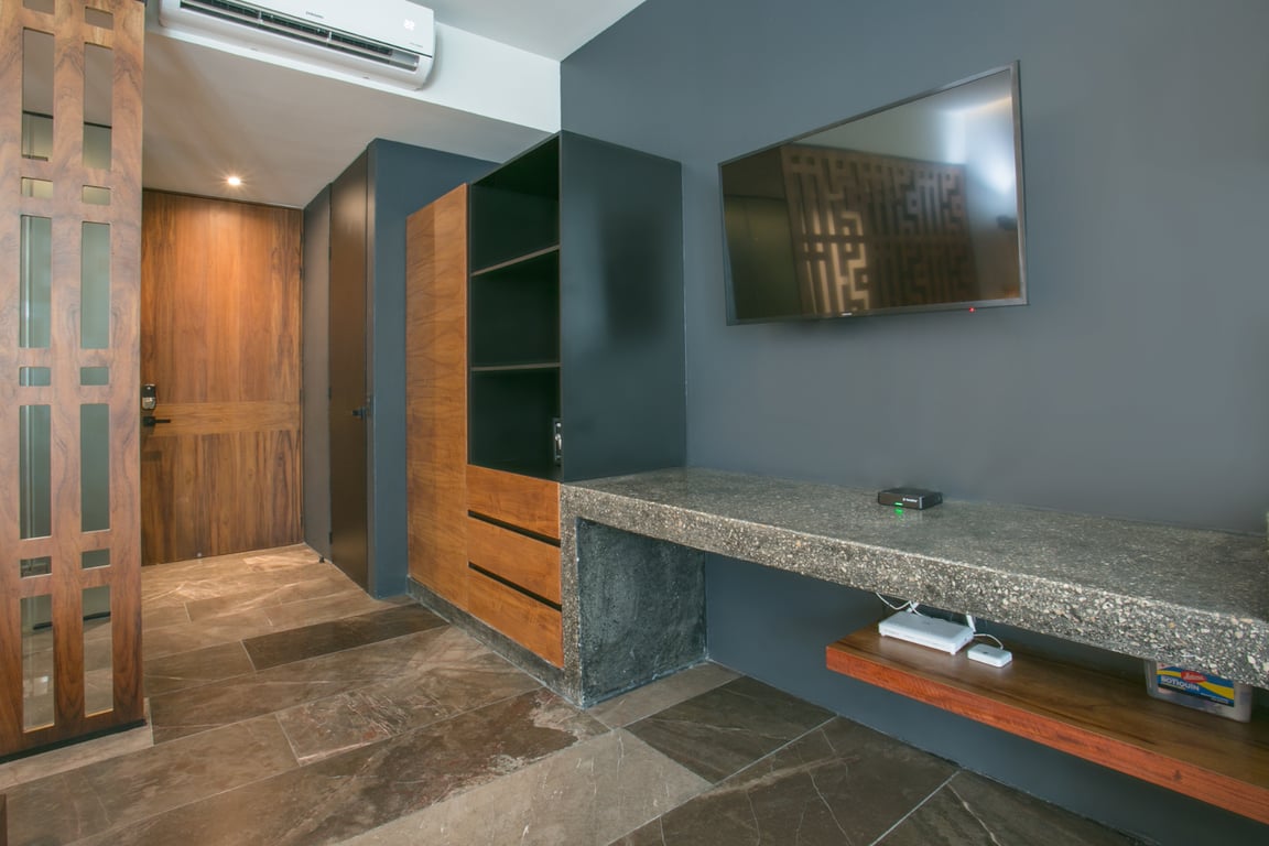 Built in 2022, this meticulously crafted condominium showcases modern design principles that maximize every square foot of its 504 square feet. The open-concept layout features an extensive granite countertop integrating a sleek kitchenette, creating a seamless flow between cooking, dining, and living spaces. Clean lines and contemporary finishes establish an atmosphere of refined simplicity, while floor-to-ceiling windows flood the interior with natural light, connecting you to Tulum's vibrant energy.