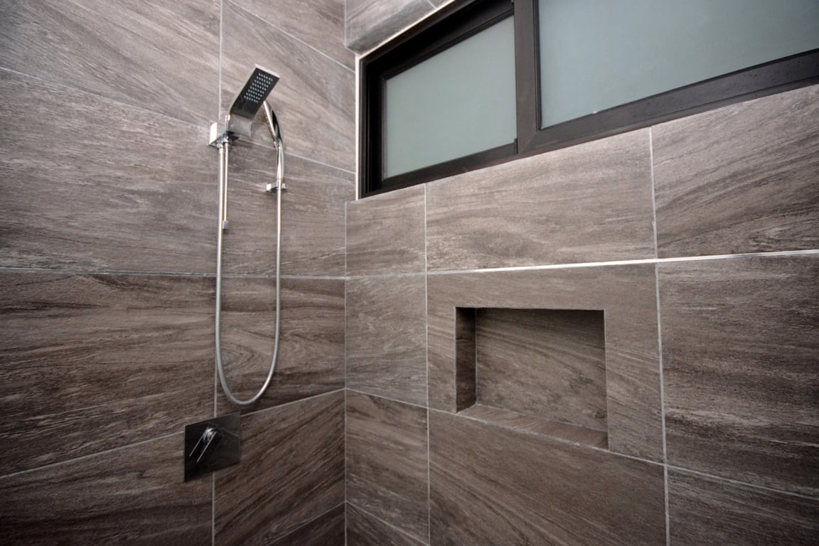 The apartment embraces a minimalist philosophy where every detail serves a purpose. Spanning a well-distributed 516 square feet, the open-concept design creates an immediate sense of spaciousness. The color palette of sophisticated grays provides a serene backdrop, punctuated by thoughtful pops of aqua that infuse the space with coastal energy. Floor-to-ceiling attention to quality is evident throughout, from the sleek ceramic sink fixtures to the tempered glass shower enclosure and modern stainless steel finishes.