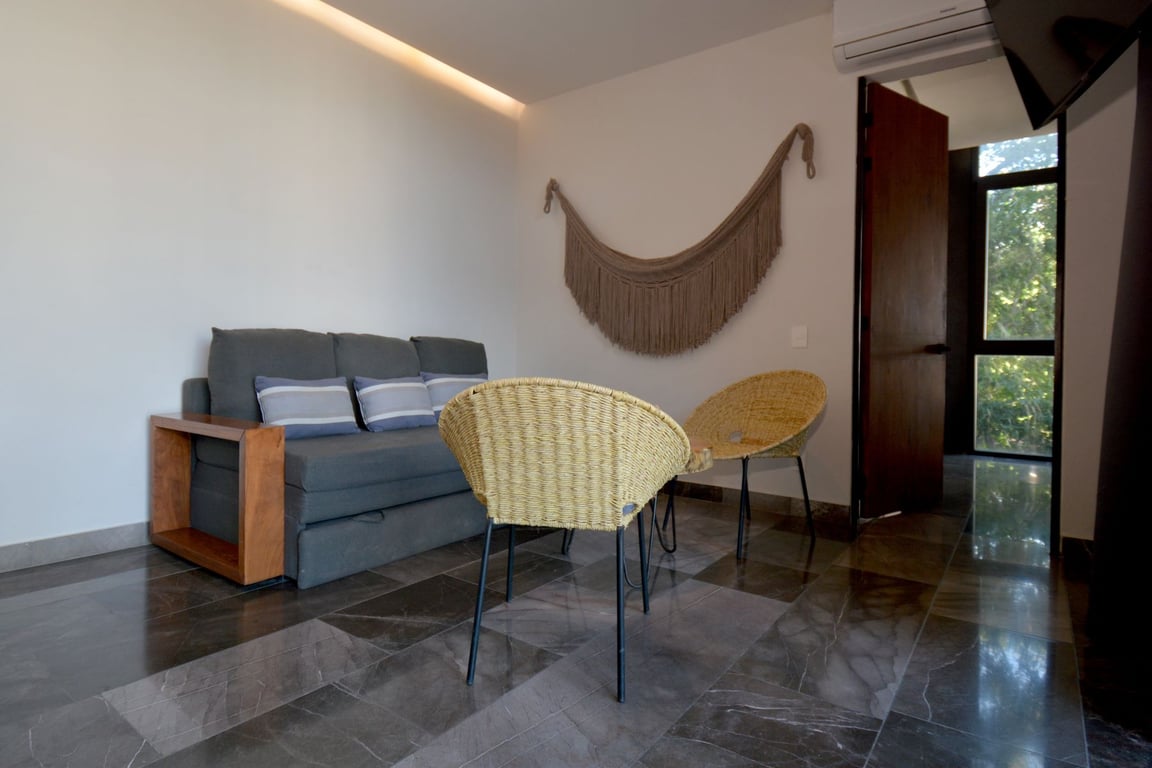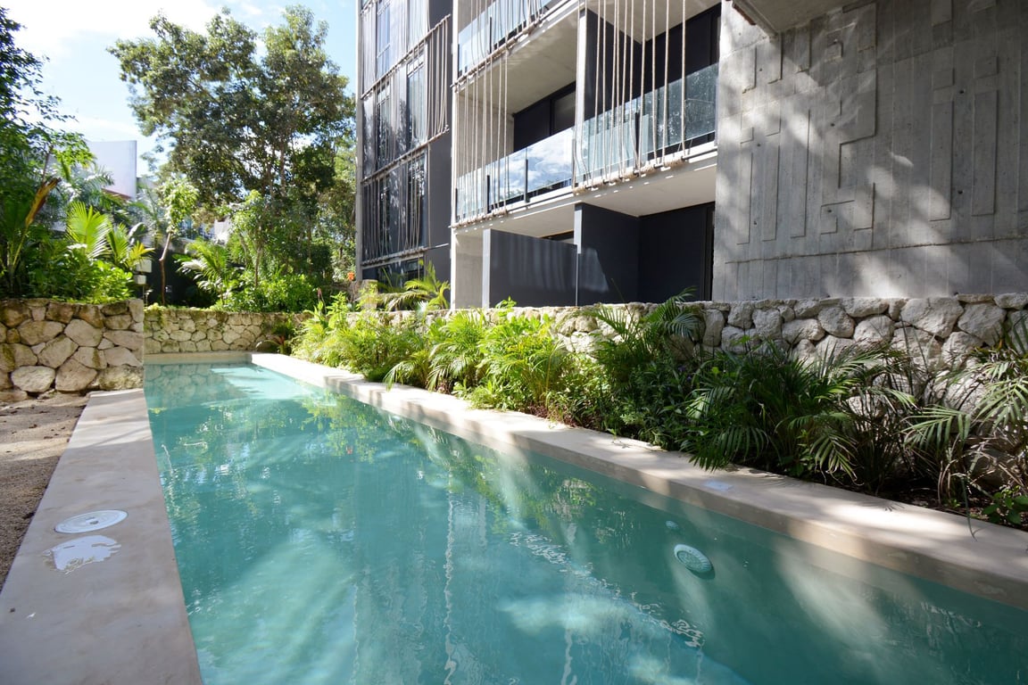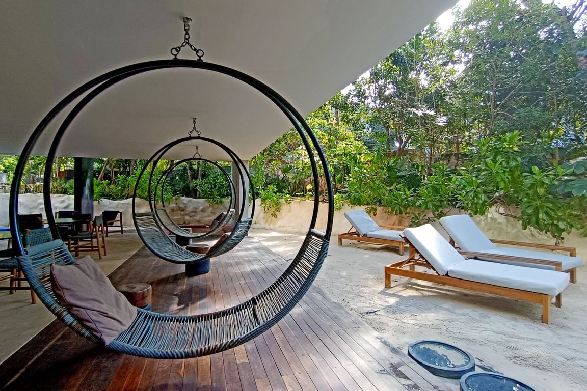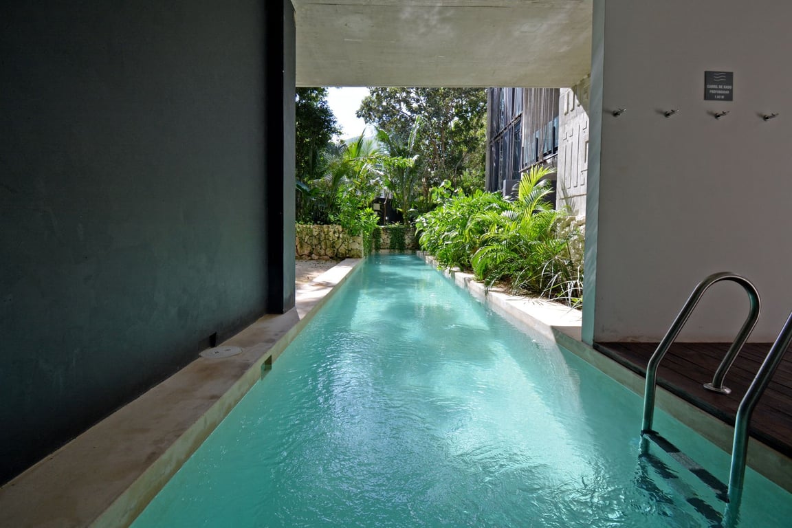 Located within the exclusive IIK development, you'll have access to resort-style amenities including a sparkling swimming pool, fully equipped gym, relaxing steam and sauna rooms, and beautifully designed common areas that capture Tulum's vibrant energy. The development's prime location places you minutes from pristine beaches, world-class restaurants, ancient Mayan ruins, and the town's eclectic boutiques and wellness centers.