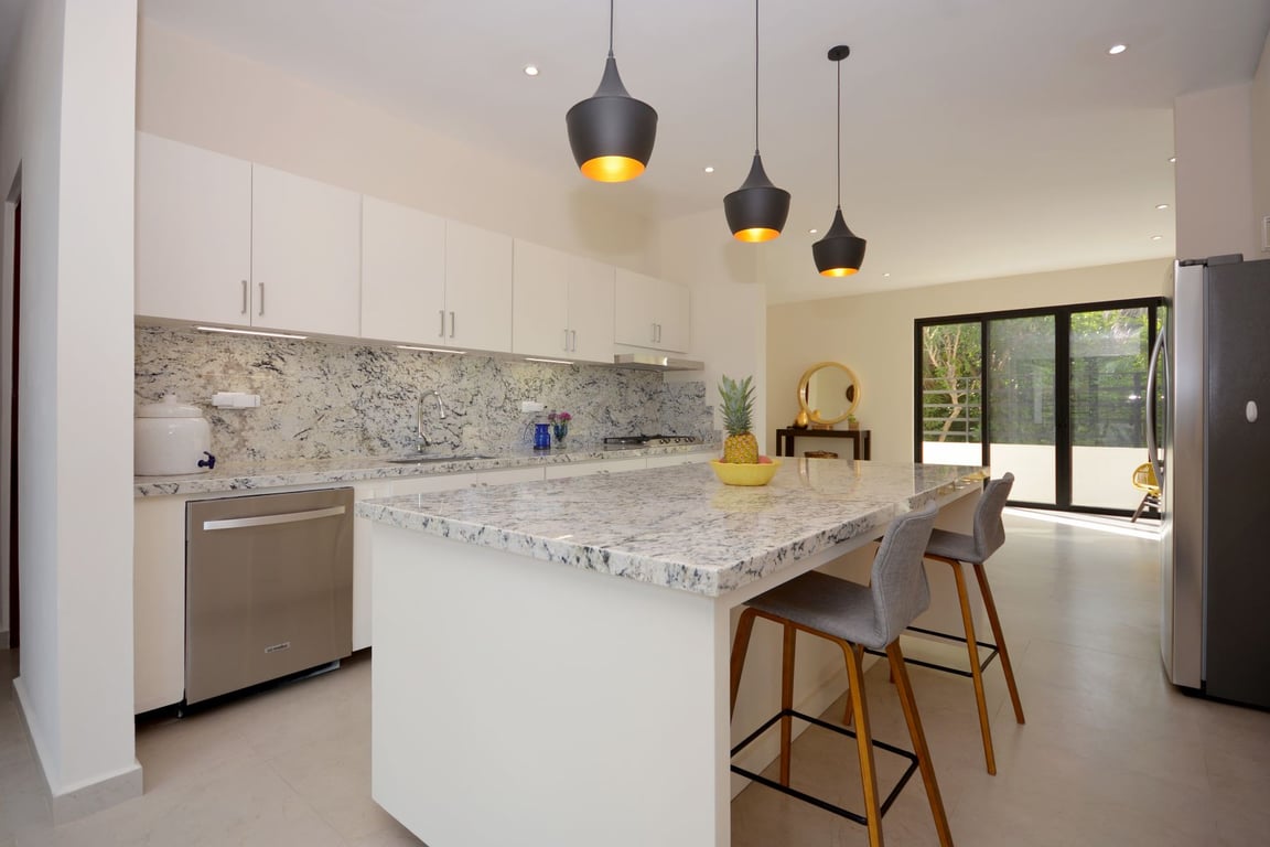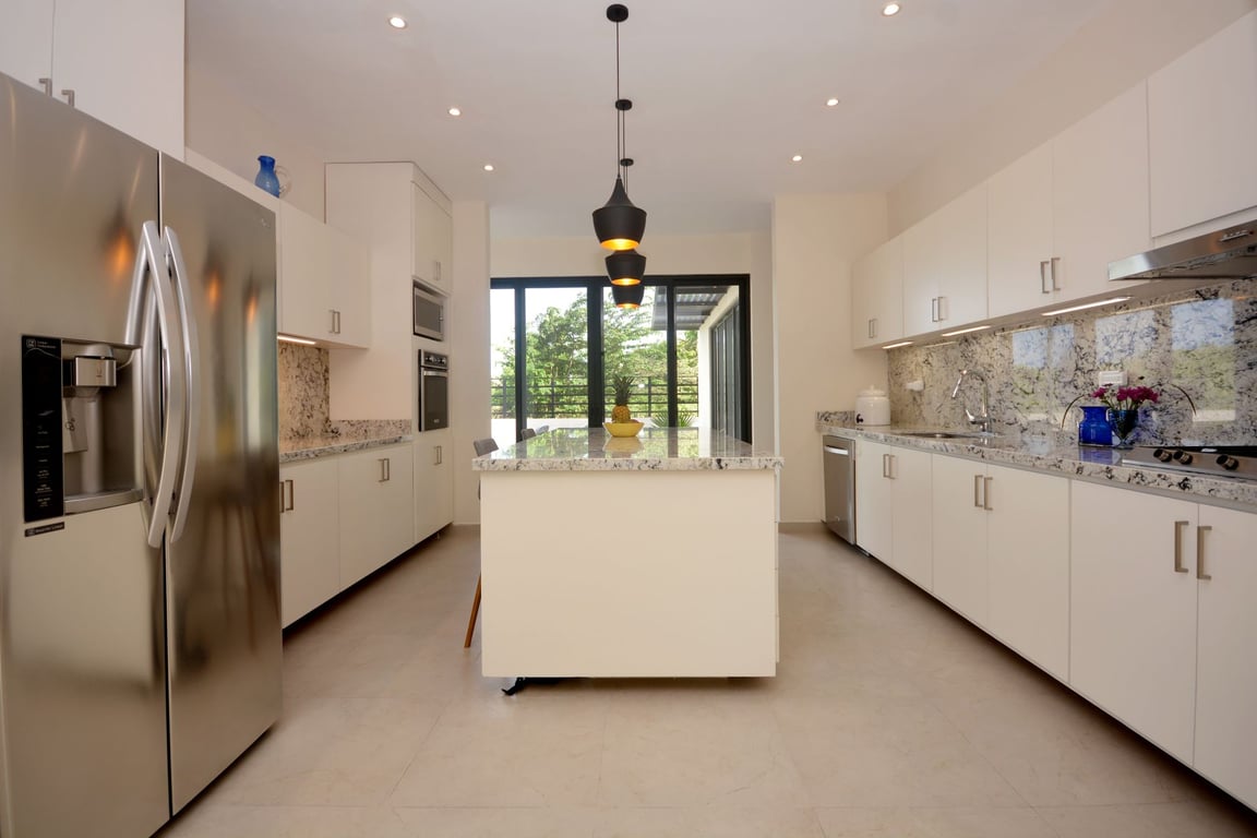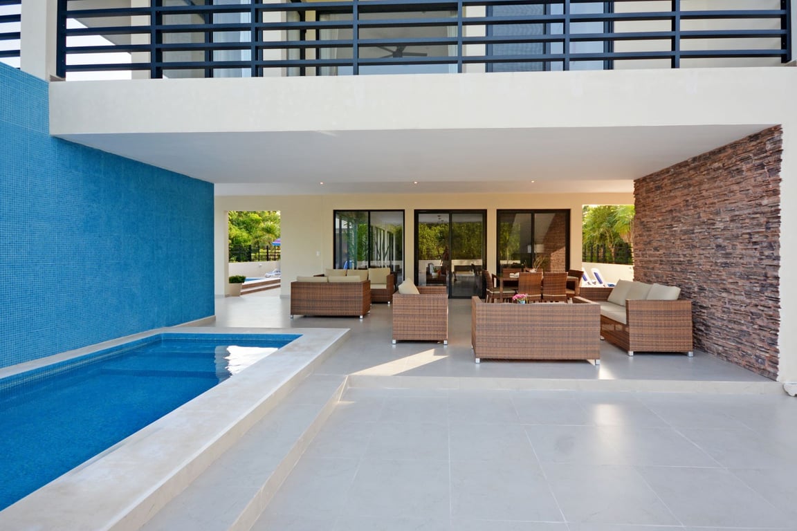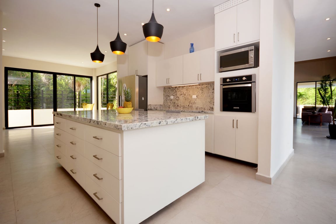 Built in 2019 with meticulous attention to detail, this architectural gem showcases high-quality finishes throughout—from floor to ceiling, wall to wall. The home's design celebrates natural light and airflow, with expansive windows framing lush jungle vistas from every angle. A stunning feature wall with a local stone water fountain anchors the open-concept living space, creating an atmosphere of tranquil elegance that sets the tone for the entire residence.