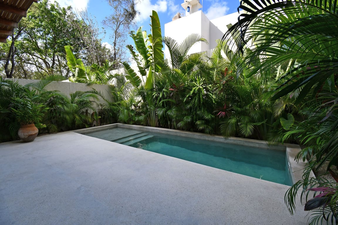 Outside, your private oasis comes to life with a refreshing pool embraced by verdant tropical gardens. Two dedicated parking spaces provide convenience in this sought-after location, while the remarkably low annual property tax of just $4,306 MXN (approximately $250 USD) makes ownership even more attractive.