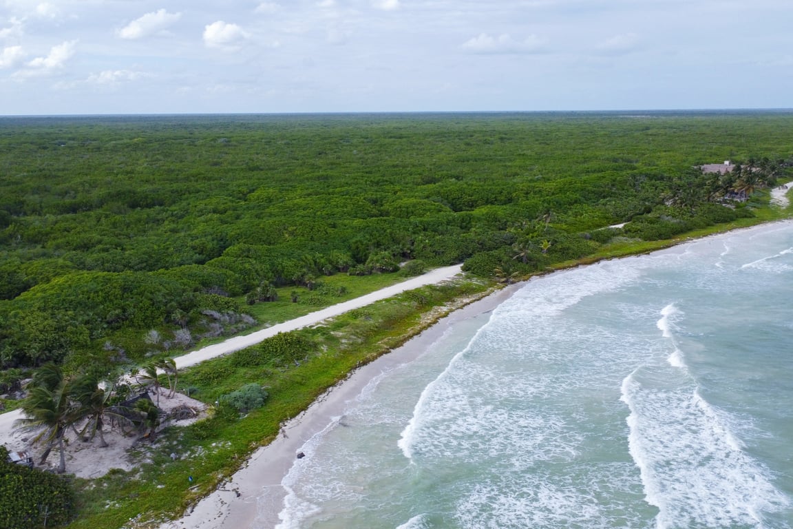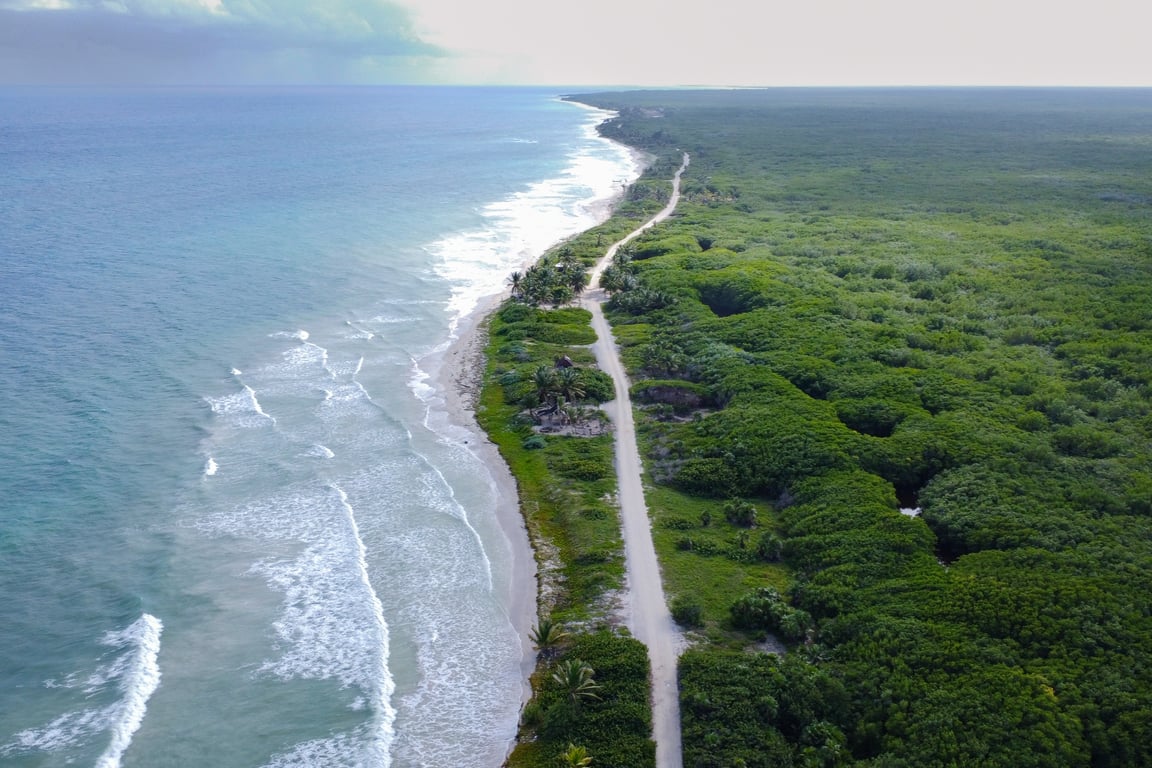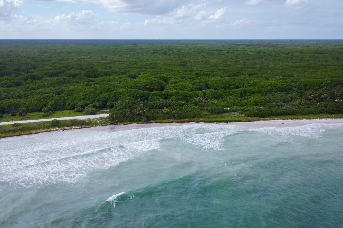 Imagine awakening to the gentle whisper of Caribbean waves caressing 328 feet of virgin white sand beach, where the only footprints are your own. This extraordinary offering of five consolidated beachfront lots, spanning 25,241 square feet along Quintana Roo's unspoiled coastline, represents a rare opportunity to claim your piece of Mexico's last remaining coastal paradises.