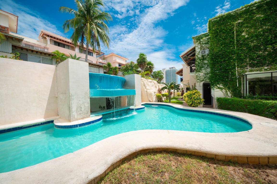 Life at Las Cascadas extends far beyond your private residence. The community features three swimming pools nestled within tropical gardens, natural waterfalls that create a serene soundtrack to daily life, a traditional palapa for gatherings, and multiple relaxation areas where you can unwind in complete privacy. Your location places you steps from world-class beaches, surrounded by the Hotel Zone's finest restaurants, championship golf courses, and premium shopping, yet tucked away in a peaceful enclave that feels worlds apart from the bustle.