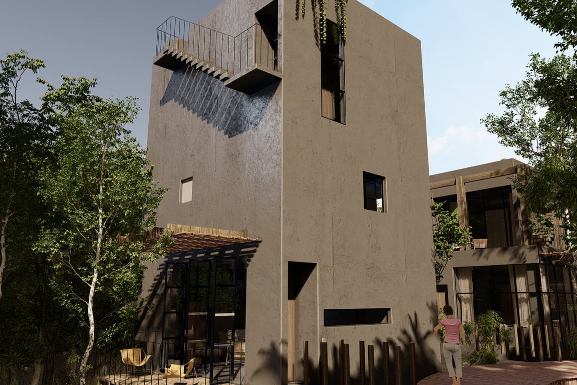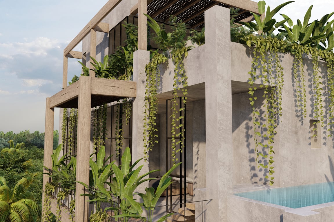 The vertical design reaches its crescendo with not one, but two spectacular outdoor terraces. The second-floor terrace provides an elevated perspective of the lush surroundings, while the crowning rooftop terrace features a private pool—your personal oasis for sunrise yoga sessions, sunset cocktails, and starlit swims beneath the Yucatan sky. These elevated spaces transform daily life into a continuous celebration of Tulum's extraordinary natural beauty.