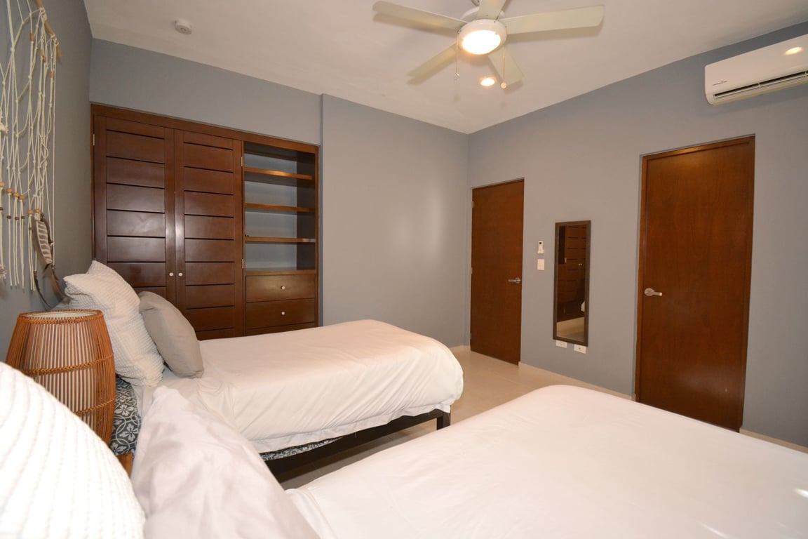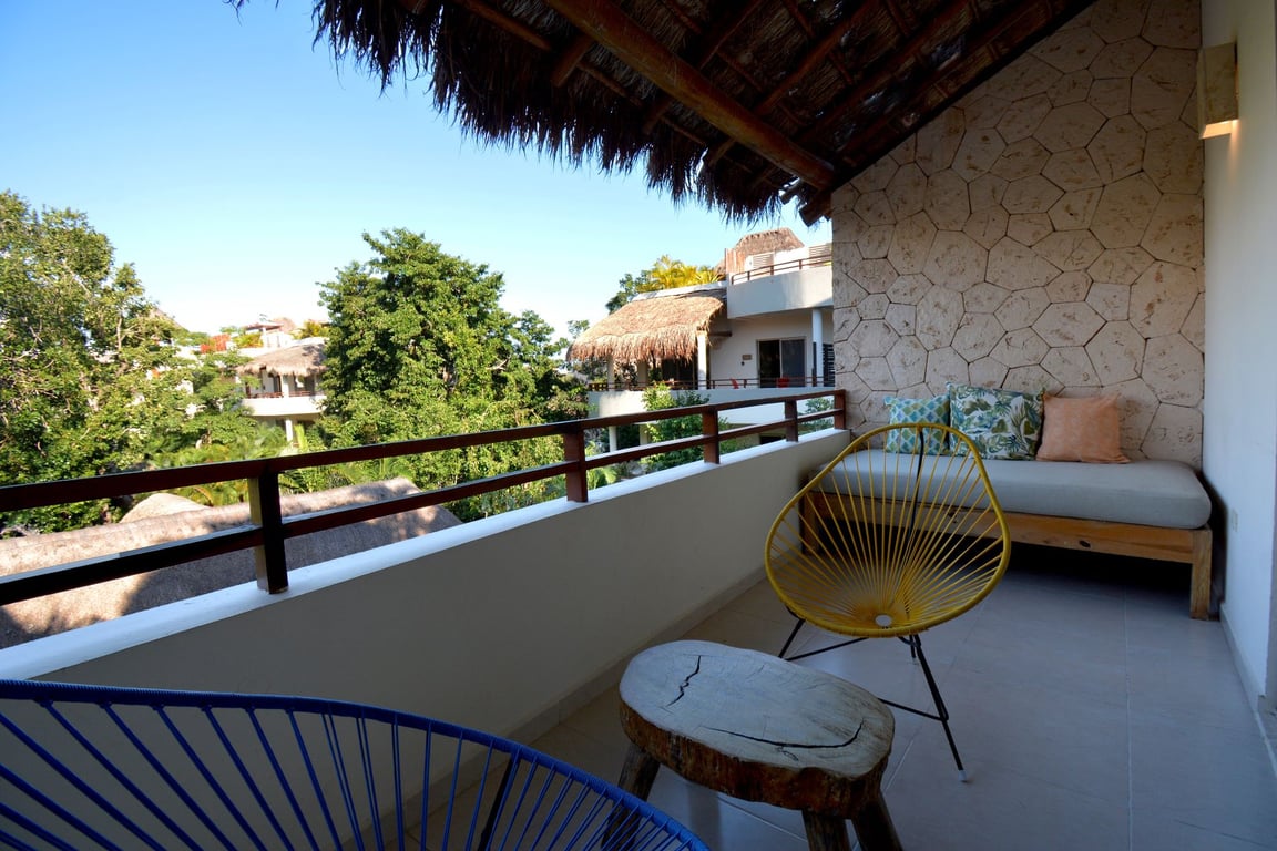 Discover the pinnacle of Tulum luxury living in this exceptional second-floor penthouse, where panoramic vistas and a private rooftop jacuzzi create an unparalleled sanctuary in one of the Riviera Maya's most sought-after communities. This meticulously maintained residence offers 1,496 square feet of thoughtfully designed space, blending indoor sophistication with expansive outdoor living across nearly 500 square feet of private terraces.