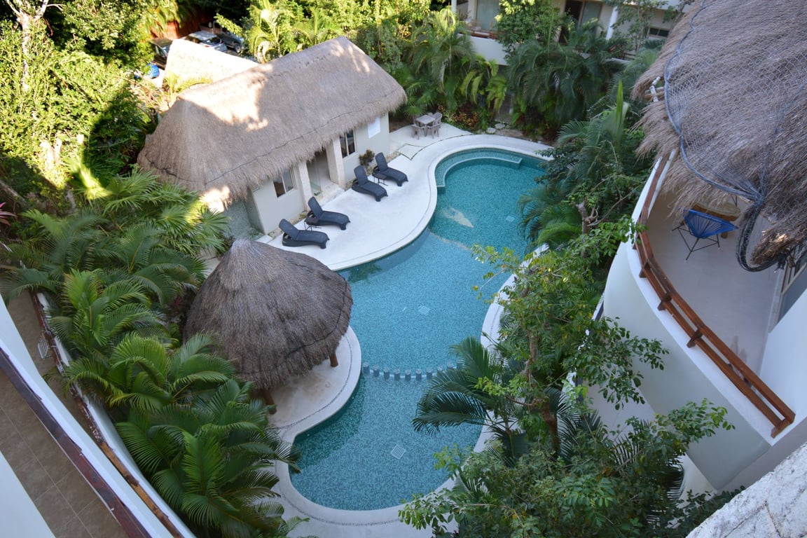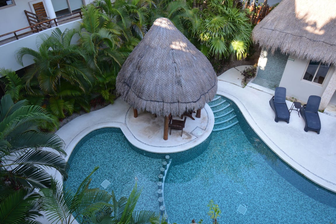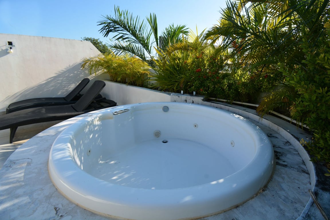 The accommodation features two generously proportioned bedrooms, each a private retreat with its own full bathroom and individual balcony overlooking the lush Tulum landscape. This thoughtful layout ensures maximum privacy for family members or guests while maintaining the home's cohesive flow. The crowning jewel remains the private rooftop jacuzzi, where you can unwind under the stars while taking in sweeping views that capture the essence of Caribbean living.