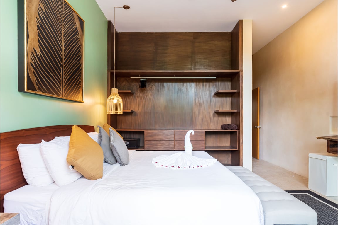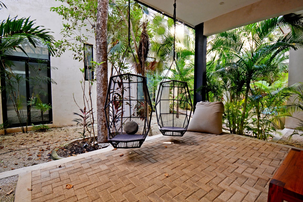 Manor Tulum's spectacular amenities rival those of a boutique resort: two distinct swimming pools—one outdoor oasis for sun-soaked relaxation and one indoor sanctuary adjacent to a curated library—provide year-round enjoyment. A dedicated business center accommodates remote work, while lush tropical vegetation throughout the corridors and common areas reinforces the jungle immersion experience. Located just 10 minutes from the Caribbean's turquoise waters, you'll enjoy easy access to Tulum's legendary beaches while maintaining a peaceful sanctuary away from the crowds.