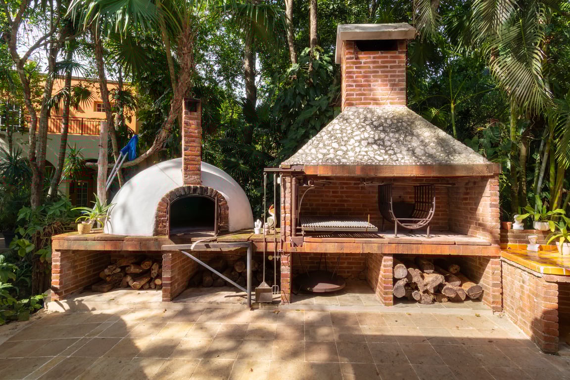 Outdoor living reaches its pinnacle with a swimming pool nestled within natural landscaping, complete with bar and terrace. The expansive palapa welcomes up to forty guests, complemented by a Uruguayan grill and pizza oven for culinary adventures. Practical luxuries include a detached office with full bathroom, staff quarters, ample parking, and meandering garden pathways that invite exploration. Located in El Ramonal, an ecological conservation community just 13 kilometers from Cancún, this property offers the tranquility of jungle living with urban accessibility—a balance few properties achieve.