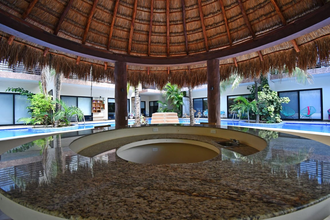 Built in 2018 with meticulous attention to detail, this first-level apartment showcases the finest materials throughout. Marble and granite surfaces create an atmosphere of understated elegance, while the open-concept design maximizes natural light and the gentle Caribbean breeze. The architecture embraces indoor-outdoor living, a hallmark of Tulum's distinctive lifestyle, with seamless transitions between interior spaces and your private terrace.