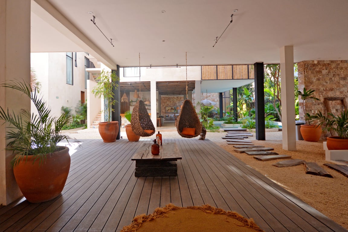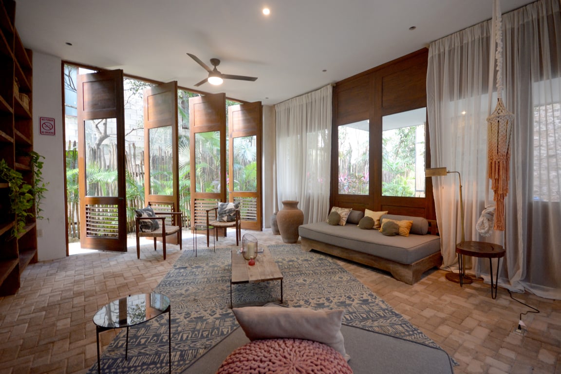 Located within Aldea Zamá, Tulum's most prestigious residential community, Manor Tulum positions you at the epicenter of the town's cultural renaissance. This prime location offers the perfect balance: jungle serenity with urban convenience, investment security with lifestyle luxury. The development's spectacular amenities include dual swimming pools—one outdoor oasis for sun-soaked relaxation and one indoor pool adjacent to a contemplative library space—plus dedicated coworking areas and communal gathering spaces, all woven through with extraordinary tropical landscaping.