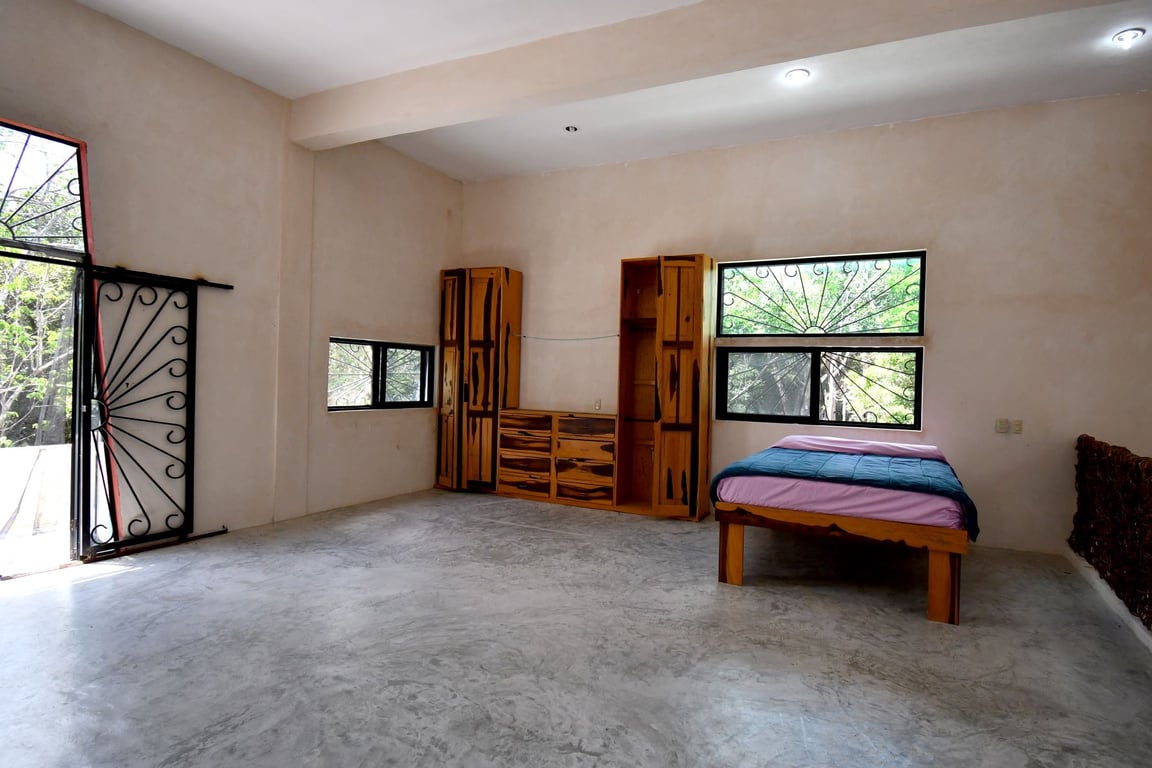 The open-plan ground floor welcomes you with a flowing layout encompassing kitchen, dining room, living area, and a full bathroom, with flexible space to create two enclosed bedrooms. Ascend to the second level to discover a generously proportioned master bedroom with its own full bathroom, while the third level reveals a spectacular rooftop terrace offering sweeping views across the untouched jungle canopy—your private observatory for sunrises, sunsets, and starlit ceremonies.