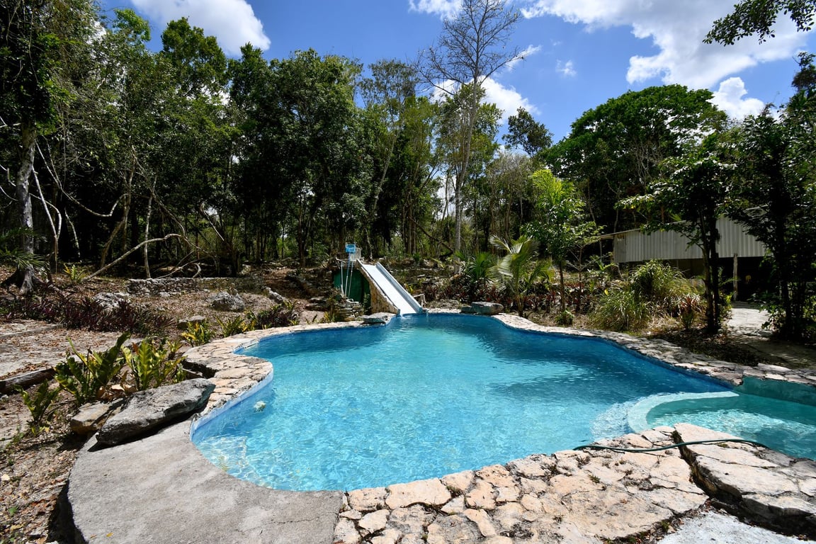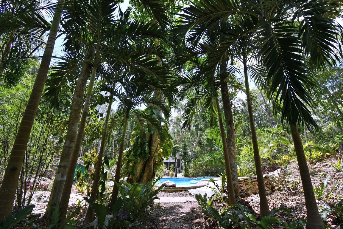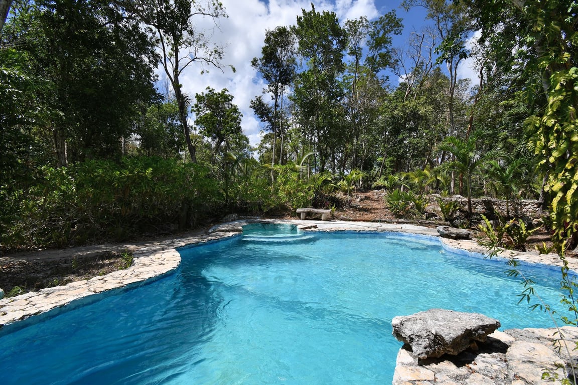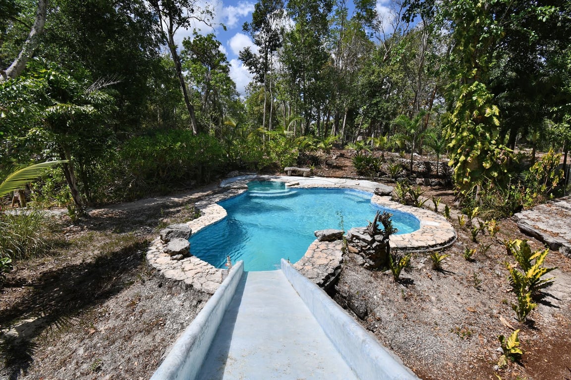 Located just 10 minutes from the Cancún-Tulum federal highway and 30 minutes from Tulum International Airport, this property positions you at the crossroads of accessibility and seclusion. The amenities enhance the experience: a jungle-framed swimming pool, ceremonial temazcal for traditional healing rituals, a natural pond, and a security guard house. The fully fenced property includes internal roads, three water wells, cisterns, biodigester septic system, CFE electrical connection with extensive copper wiring, and Wi-Fi connectivity.