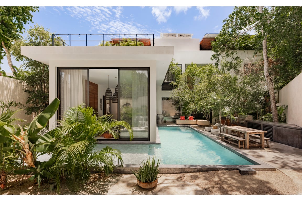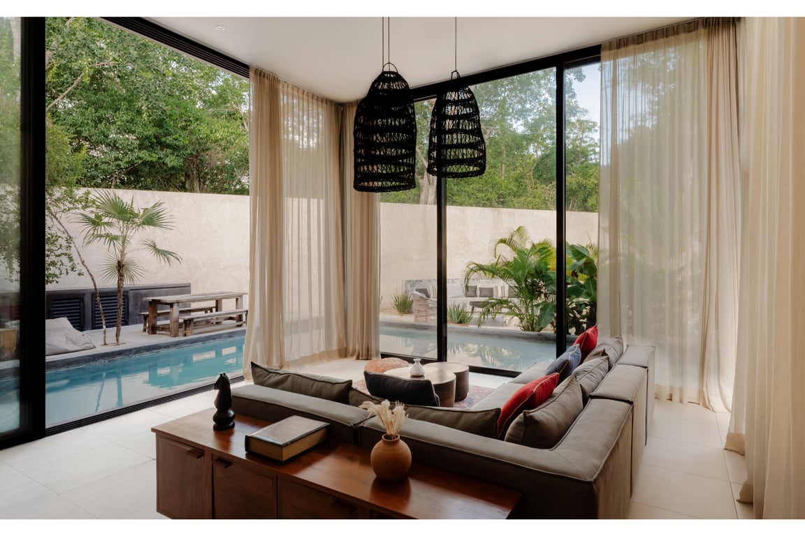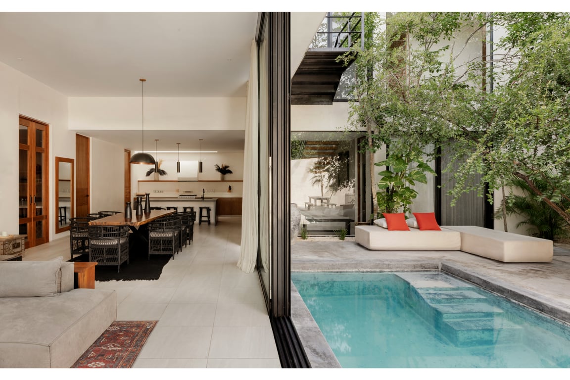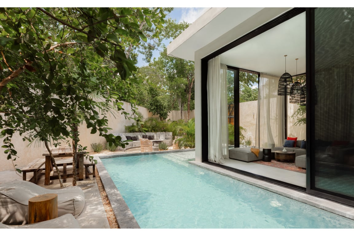 The residence offers four generously proportioned bedrooms and four bathrooms—including three full baths and one powder room—each crafted with meticulous attention to detail and premium finishes. Living spaces flow effortlessly from elegant interiors onto a private terrace and pool area, creating an entertainer's paradise and personal oasis. High-end finishes throughout elevate every moment, from morning coffee overlooking your private pool to evening gatherings under the Tulum stars. The thoughtful layout ensures both communal living and private retreats, perfect for families or hosting guests in style.