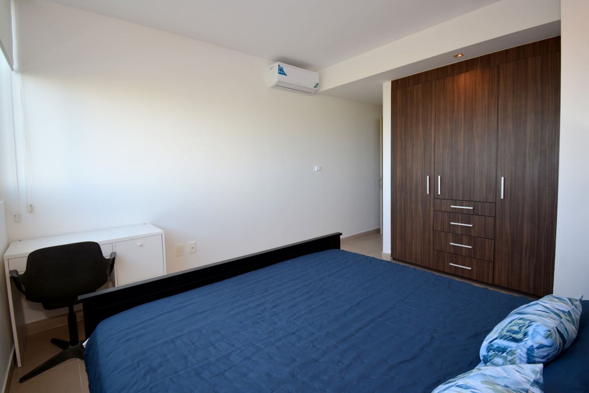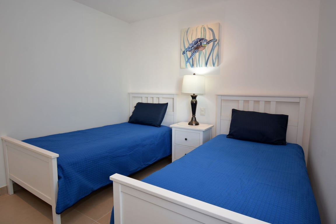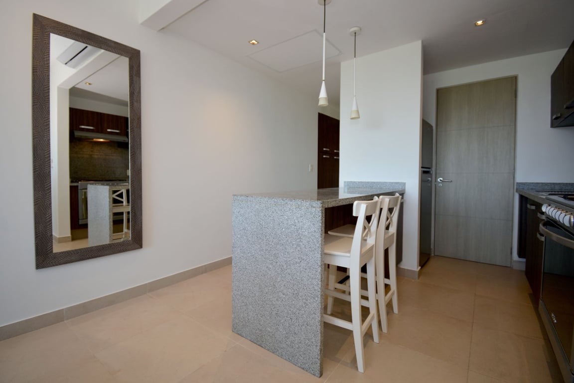 The primary suite serves as a private retreat, complete with an en-suite bathroom and generous walk-in closet that provides abundant storage without compromising the home's sleek design. The second bedroom offers versatility for guests, family, or a home office, with its spacious closet and convenient access to a full bathroom. Every inch of this residence has been optimized to deliver both functionality and style, arriving fully furnished and ready for you to begin your Riviera Maya lifestyle immediately.