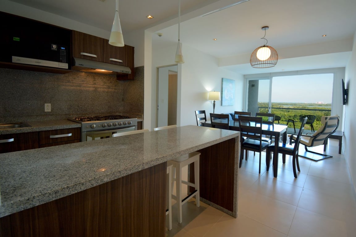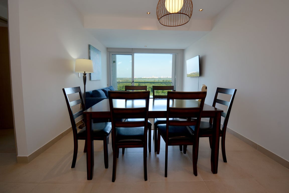 Perched on the third floor of the prestigious Torre Buenos Aires, this exceptional 2-bedroom residence offers a rare trifecta: sweeping Caribbean Sea vistas, serene Nichupté Lagoon panoramas, and dynamic city skyline views. Welcome to Malecón Américas Residences, where luxury living meets the vibrant energy of Cancun's most sought-after waterfront address.