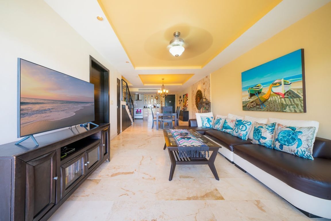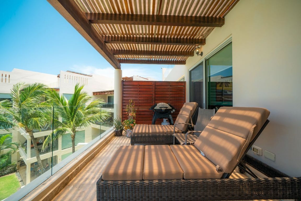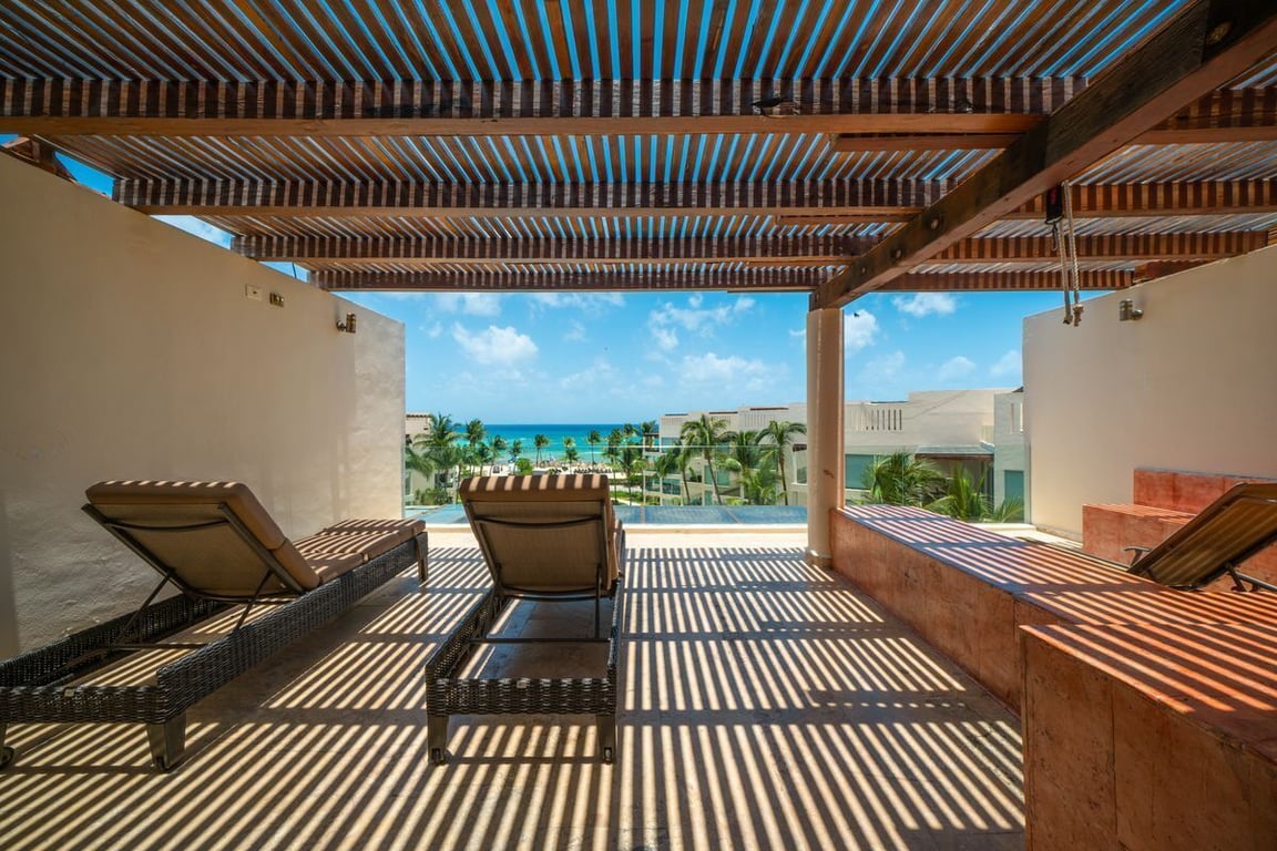 Beachfront 3 bedroom, 3 bathroom 2-level penthouse offers ocean views from almost every room. You'll find the master suite with ocean view, king bed, TV, and ensuite bathroom on the top level. Then right outside your door sits your private rooftop terrace with 2 lounge chairs, and ocean view.