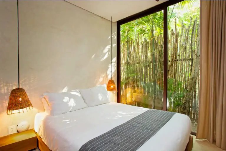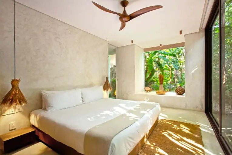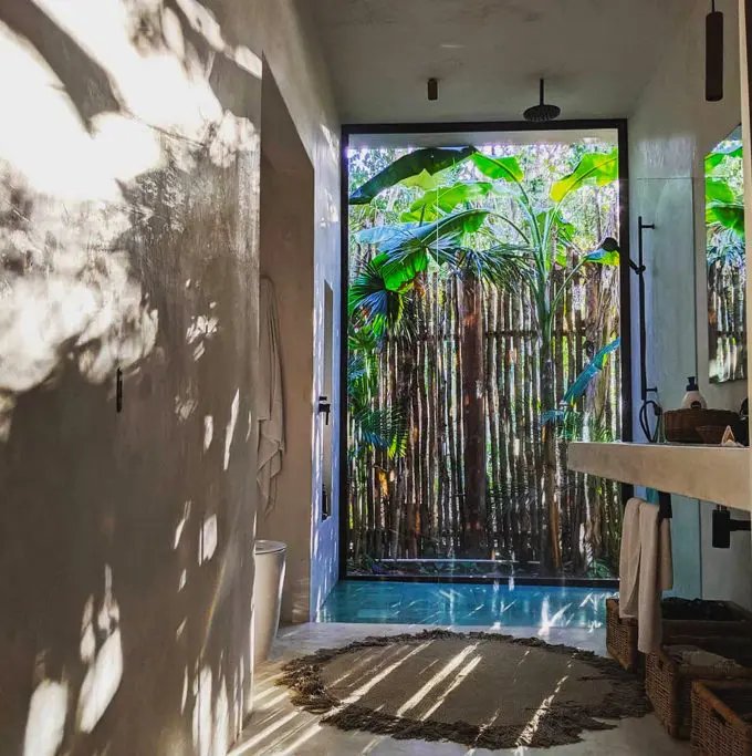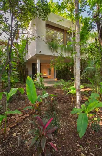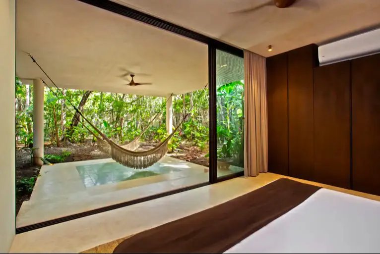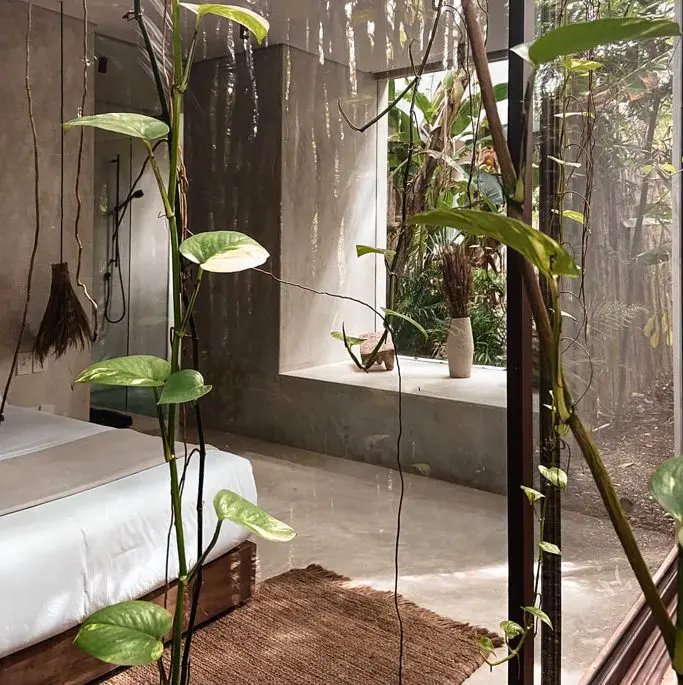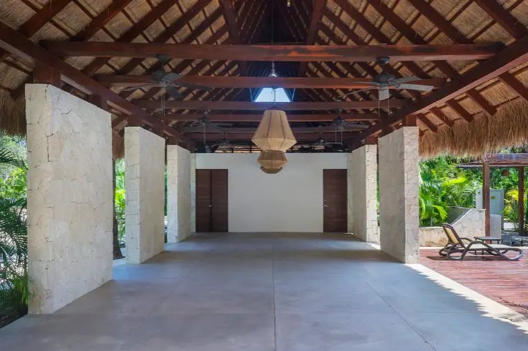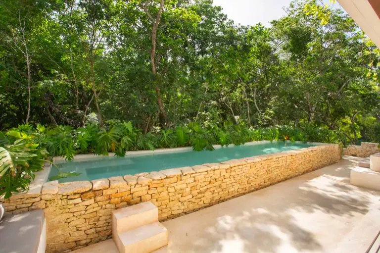 The journey home begins with an artfully crafted exterior staircase, wrapped in local stone quarried from the very earth it stands upon. As you ascend through carefully curated jungle landscaping past the shimmering pool, you're transported into a world where indoor and outdoor living merge seamlessly in the canopy.