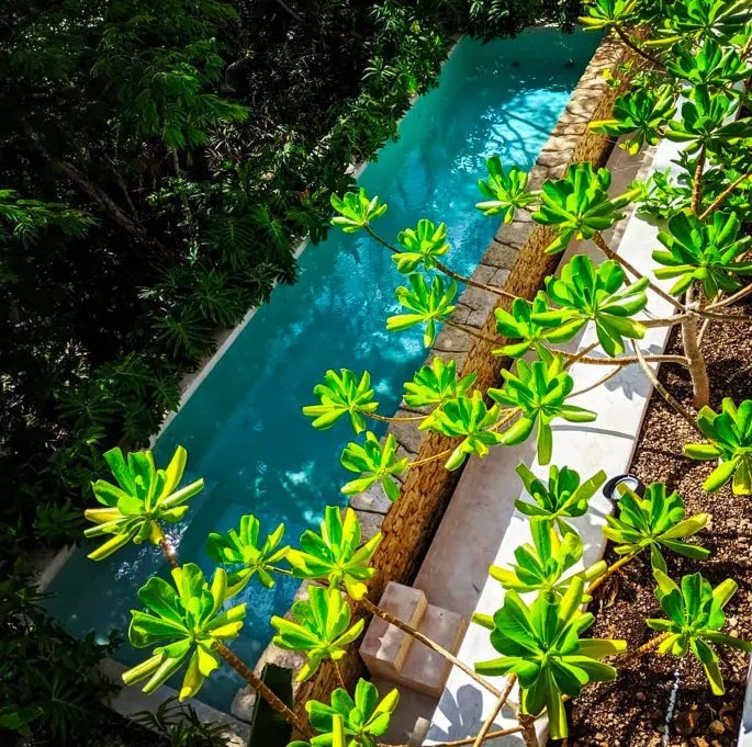 Perched elegantly among swaying palms, this CO-LAB designed masterpiece draws inspiration from nature's own architecture. Taking its cues from the majestic tepuis – ancient tabletop mountains that indigenous peoples called 'houses of the gods' – this 5,274-square-foot residence elevates luxury living to new heights.