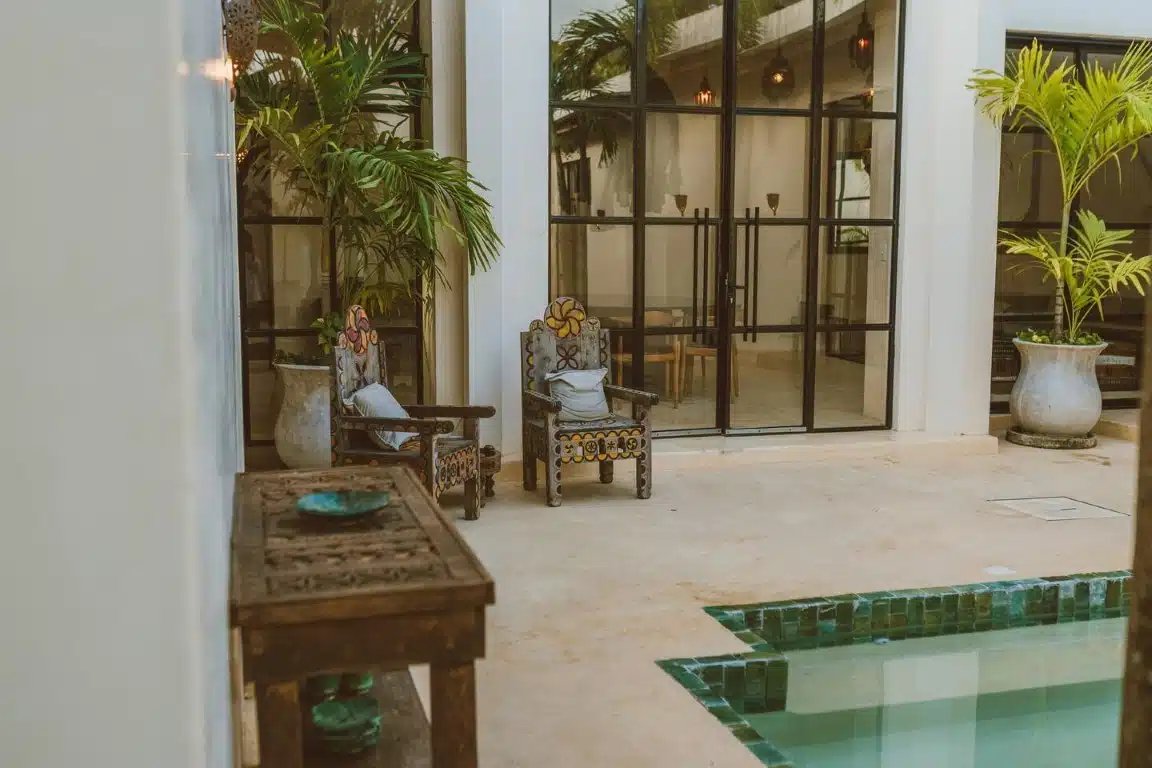 Step into a world where Moroccan mystique meets Caribbean serenity at Villa Mirage, an extraordinary Riad-style sanctuary nestled in Tulum's prestigious La Veleta neighborhood. The moment you enter through the gated entrance, you're transported to an exotic realm where soaring double-height ceilings, intricate Moroccan tilework, and custom imported furnishings create an atmosphere of unparalleled sophistication. This is not merely a residence—it's a meticulously curated experience that honors centuries-old architectural traditions while delivering contemporary luxury at every turn.