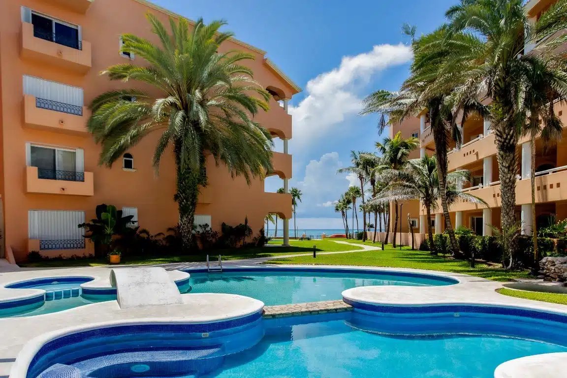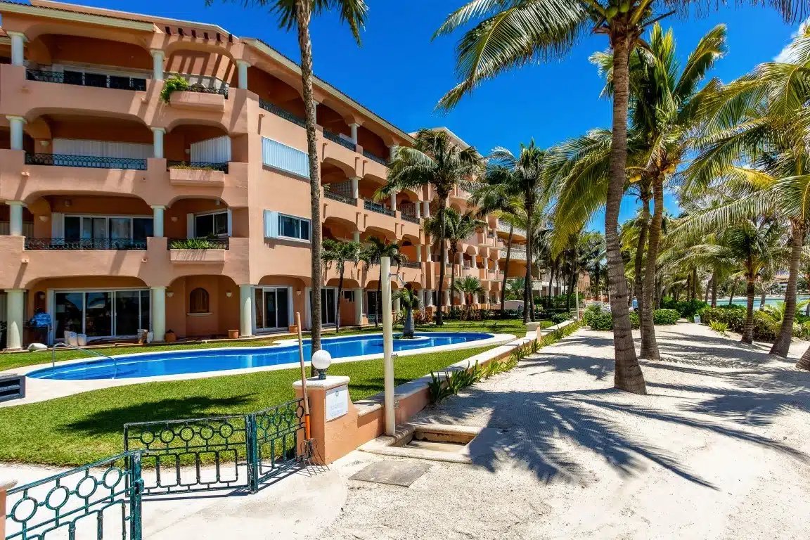 The Quinta del Sol residential area features beachfront landscaping and two resident-only pools with private access to kayaks for residents.