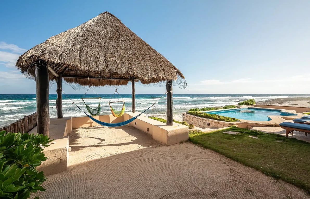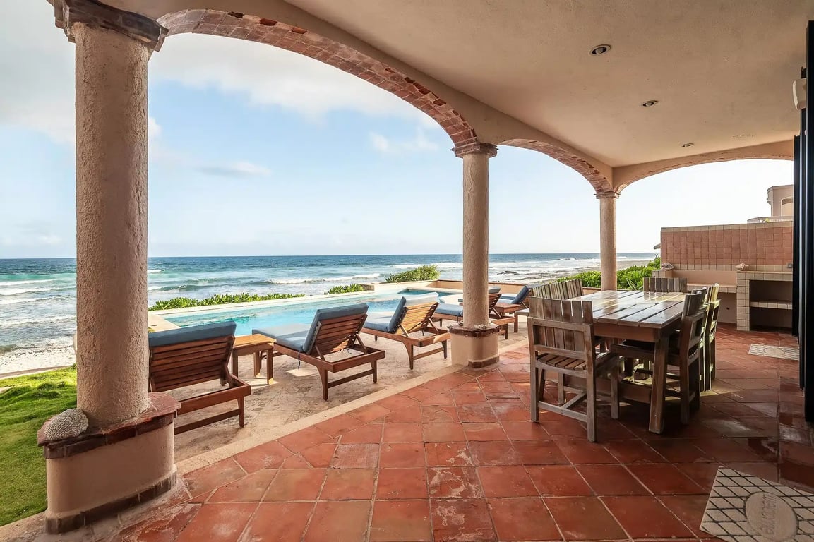 What makes this property truly special? How about your morning coffee on the beachfront terrace as sea turtles nest along your shoreline? Or perhaps it's evening cocktails under your shaded palapa while gentle waves provide nature's soundtrack. The private pool offers refreshing relief from the tropical sun, seamlessly blending with the ocean panorama beyond.
