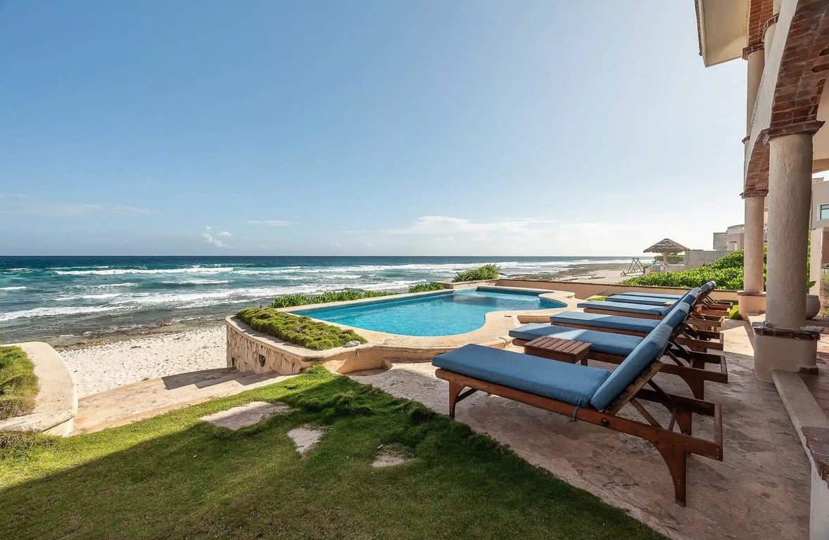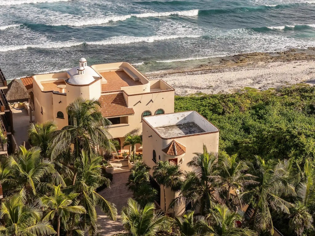 Ever dreamed of owning your slice of Caribbean heaven? Casa Tres Palmeras isn't just a home—it's a lifestyle wrapped in luxury and natural wonder. This spectacular 4-bedroom beachfront villa sits along the pristine shores of Tankah Bay, where the turquoise waters meet powder-white sand.