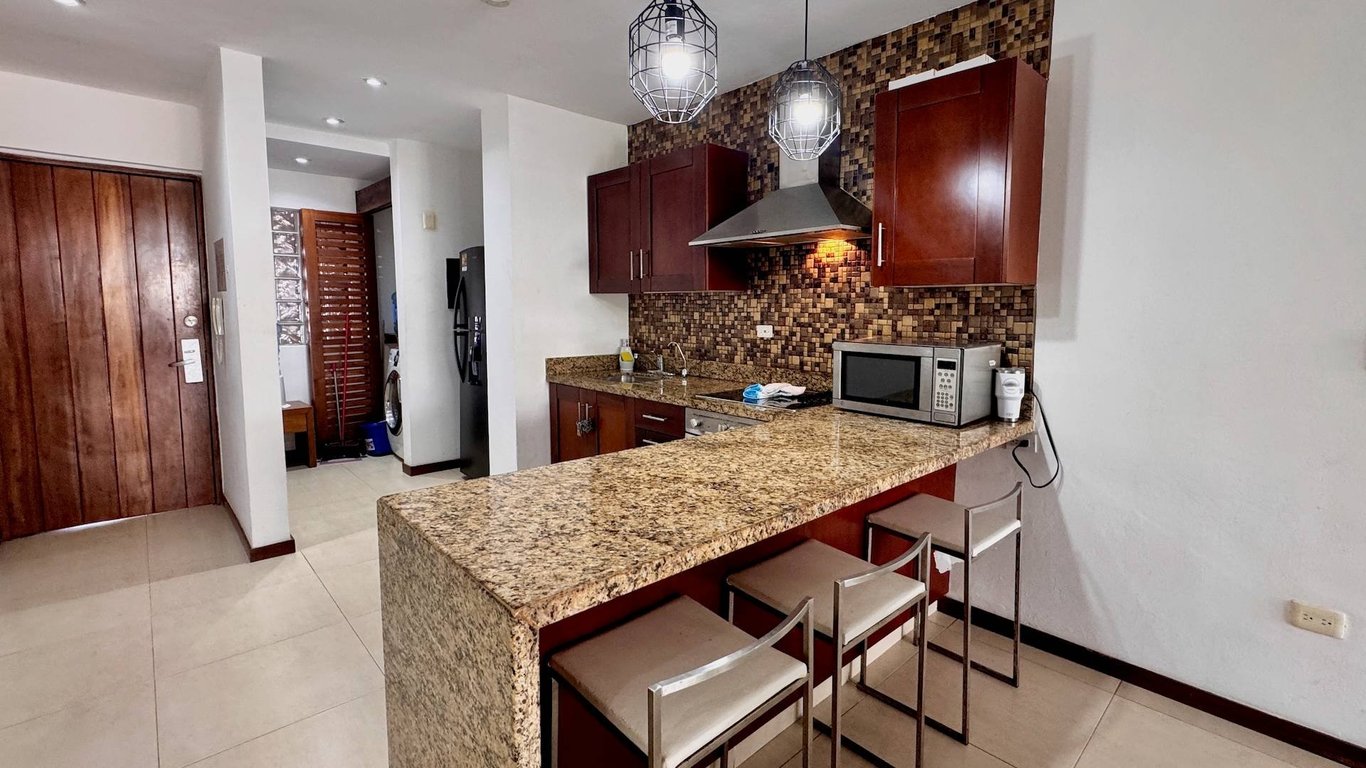 The in-suite laundry facilities eliminate one of vacation rental's common inconveniences, while the corner terrace's generous two-hundred-thirty-four square feet of outdoor space provides that coveted indoor-outdoor living experience that discerning travelers actively seek. Your massive terrace overlooking iconic Fifth Avenue transforms ordinary moments into memorable experiences—whether you're entertaining friends, enjoying solitary sunrise yoga sessions, or simply savoring the intoxicating blend of Caribbean breezes and cosmopolitan energy that defines Playa del Carmen.