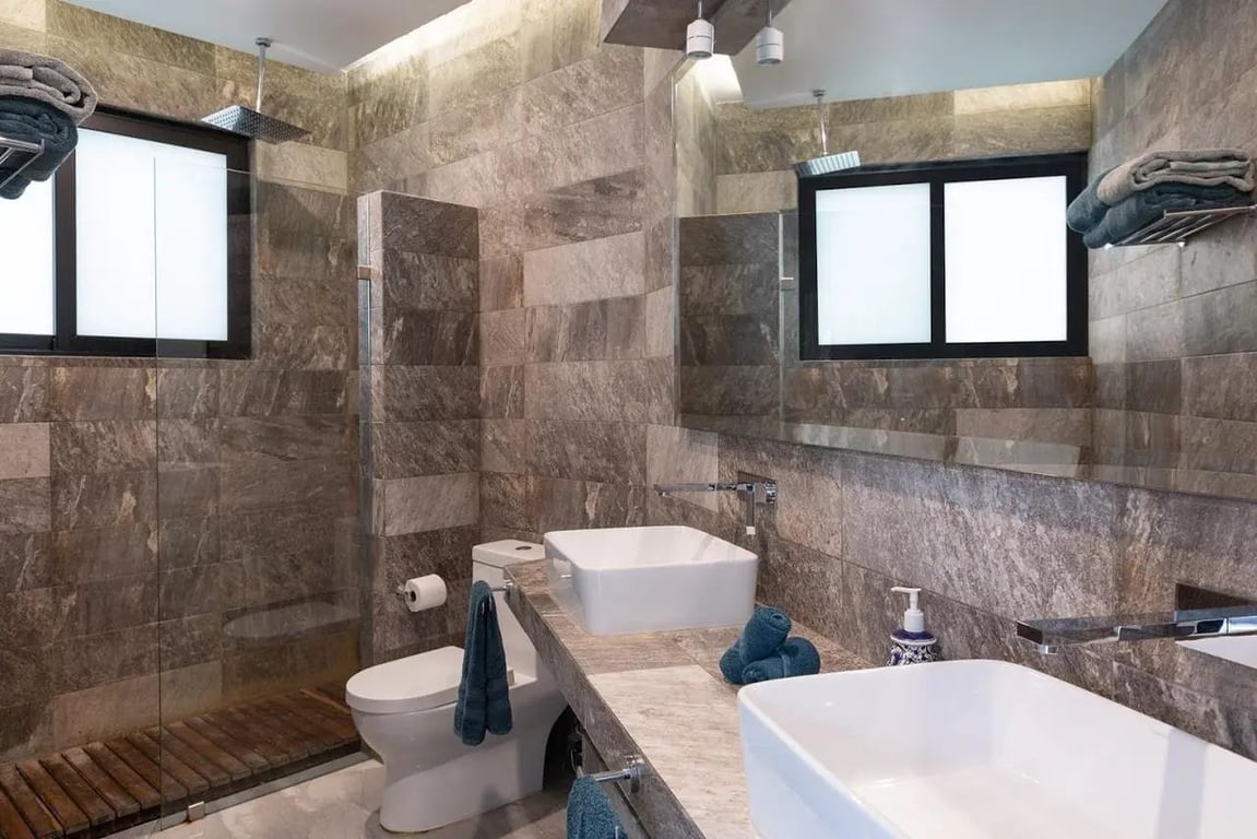 Every bedroom feels like a personal retreat, equipped with both air conditioning and ceiling fans for your comfort. The bathrooms are equally impressive, with the master options featuring double sinks for added convenience. And since the property comes fully furnished, including quality mattresses and garden furniture, you can start living your Tulum dream from day one.