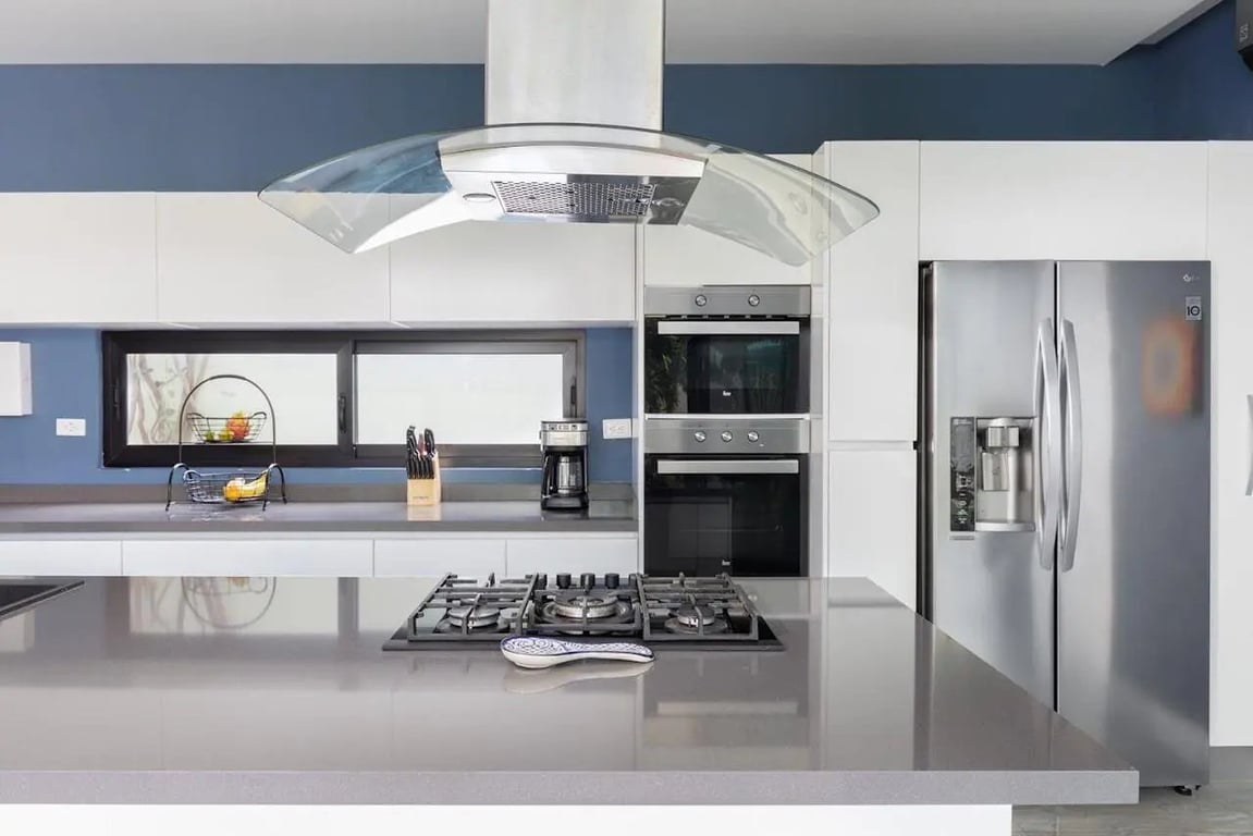 The heart of any home is its kitchen, and this villa gives you two. The main kitchen runs on gas and serves three bedrooms, while a separate electric kitchen caters to two additional bedrooms. Both spaces come fully equipped with modern appliances, including everything from microwaves to refrigerators. It's a chef's dream with enough space and functionality to handle anything from quiet family dinners to entertaining friends.