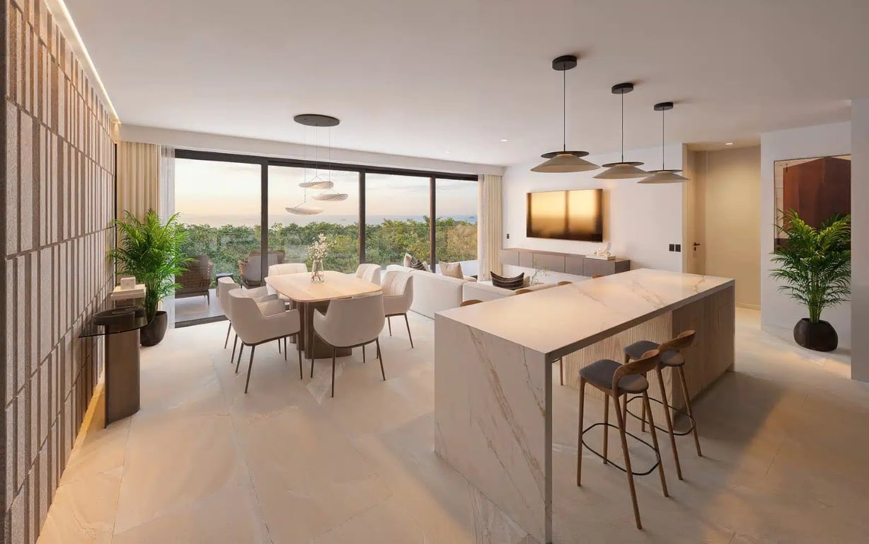 Residence 302 offers a practical opportunity to own a two-bedroom property in a well-amenitized coastal community, combining modern architecture with access to beach club facilities and the lifestyle of the Mexican Caribbean.