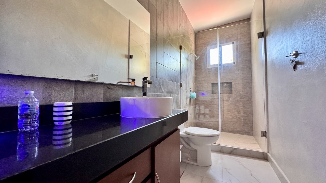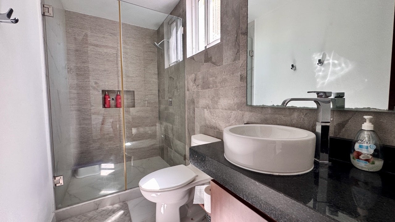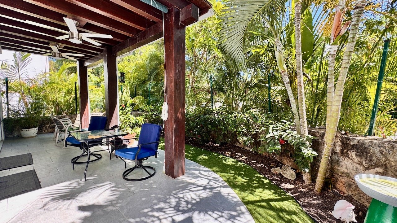 Spanning approximately twenty-nine hundred square feet across three thoughtfully planned levels, this residence flows effortlessly from indoor elegance to outdoor serenity. The ground floor welcomes you with an open-concept living and dining area that connects seamlessly to a spacious galley kitchen—perfect for both everyday family meals and entertaining guests. Floor-to-ceiling sliding doors dissolve the boundary between interior and exterior, revealing your private wraparound garden terrace where morning coffee rituals and sunset gatherings become daily pleasures against a backdrop of tropical greenery. Minimal front steps and adaptable entry options mean accessibility concerns fade away, allowing you to focus simply on enjoying your Caribbean lifestyle.